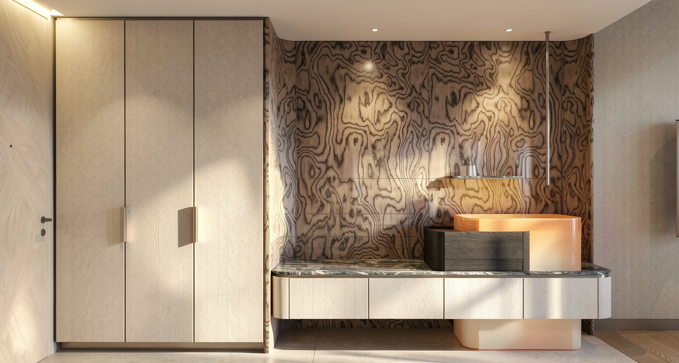 a grand auditorium with elegant wooden panels and rows of plush seats in rich mahogany the stage is adorned with a luxurious deep velvet curtain in charcoal gray reflecting a soft silvery light the ceiling features modern sleek designs with muted metallic accents ambient lighting casts a warm inviting glow creating a sophisticated and serene atmosphere the overall color palette blends deep browns soft grays and subtle metallics exuding class and tranquility