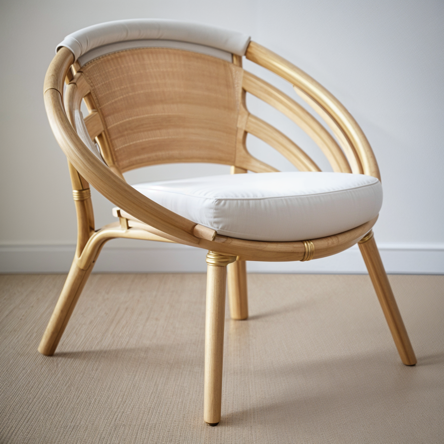modernist rattan weaving inspired chair wooden wire brush finish legs upholstered seat and back architecture