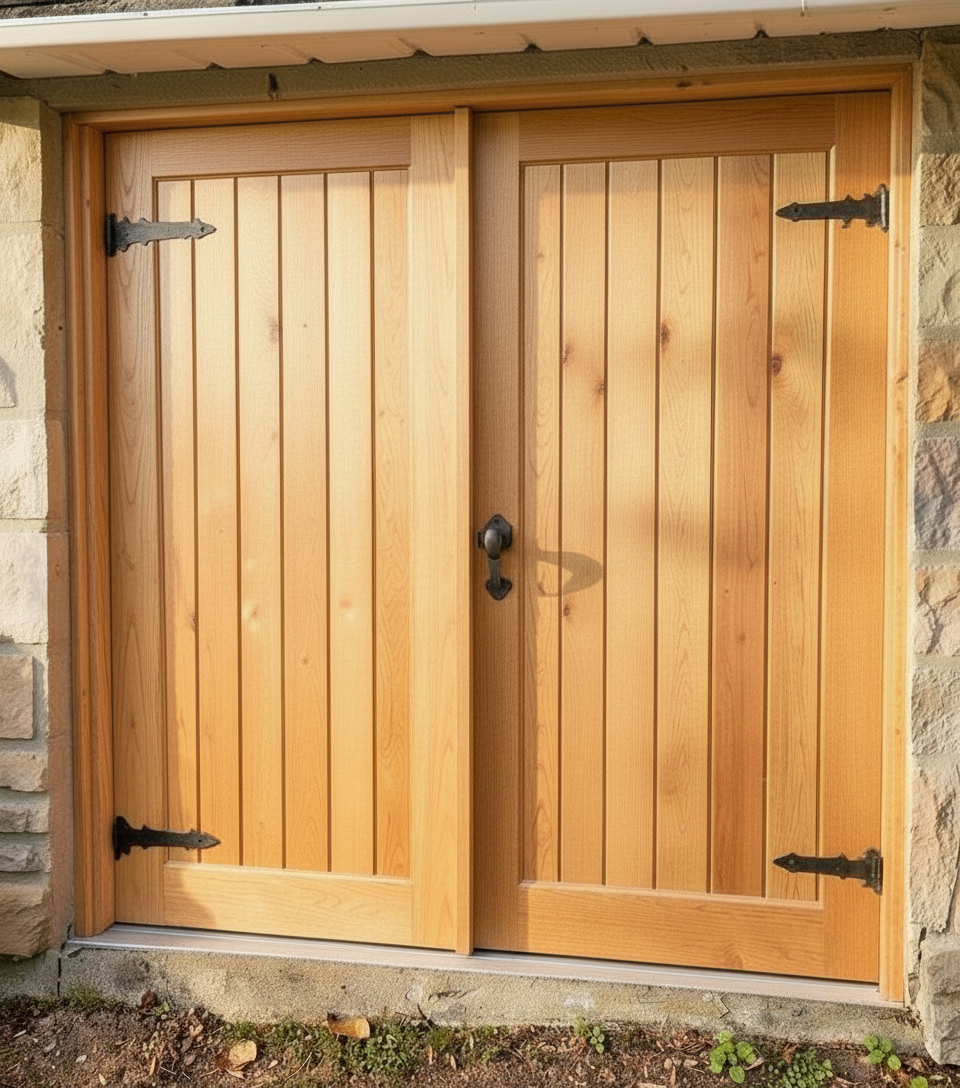 please use this iteration of these two doors but eliminate the picture framed rails but keep all vertical planks of the doors