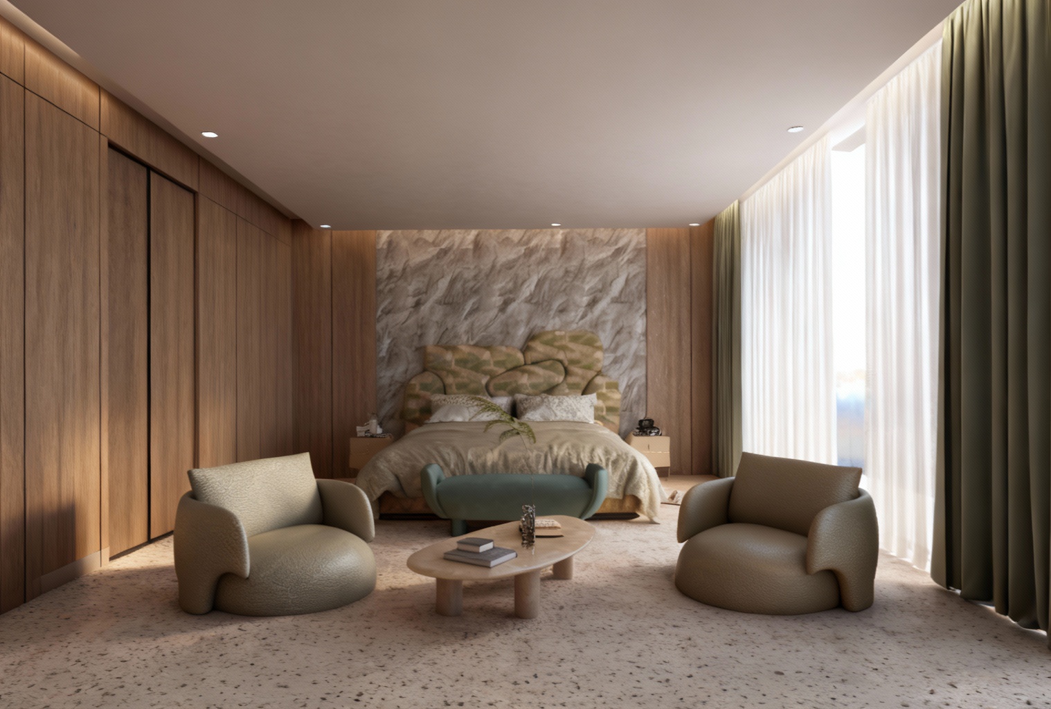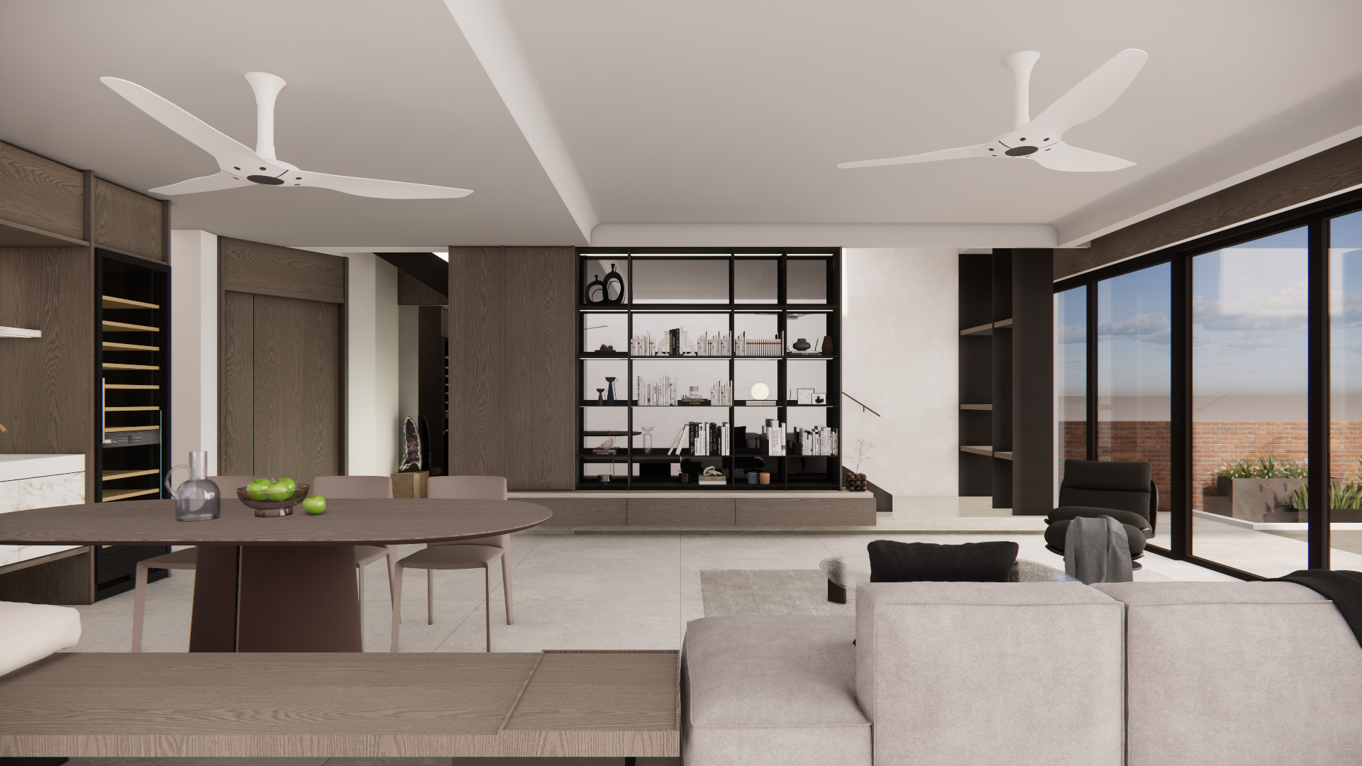 match the exact viewpoint and keep the design unchanged no modifications to furniture forms fa ade openings or layout preserve original color temperature and tone exactly upgrade realism only physically correct lighting clean indirect bounce realistic shadow softness improved material depth wood grain paint texture metal roughness accurate glass transparency and reflections subtle ambient occlusion natural highlights realistic surface imperfections very subtle keep everything architecturally consistent and professional like a studio renderer finish
