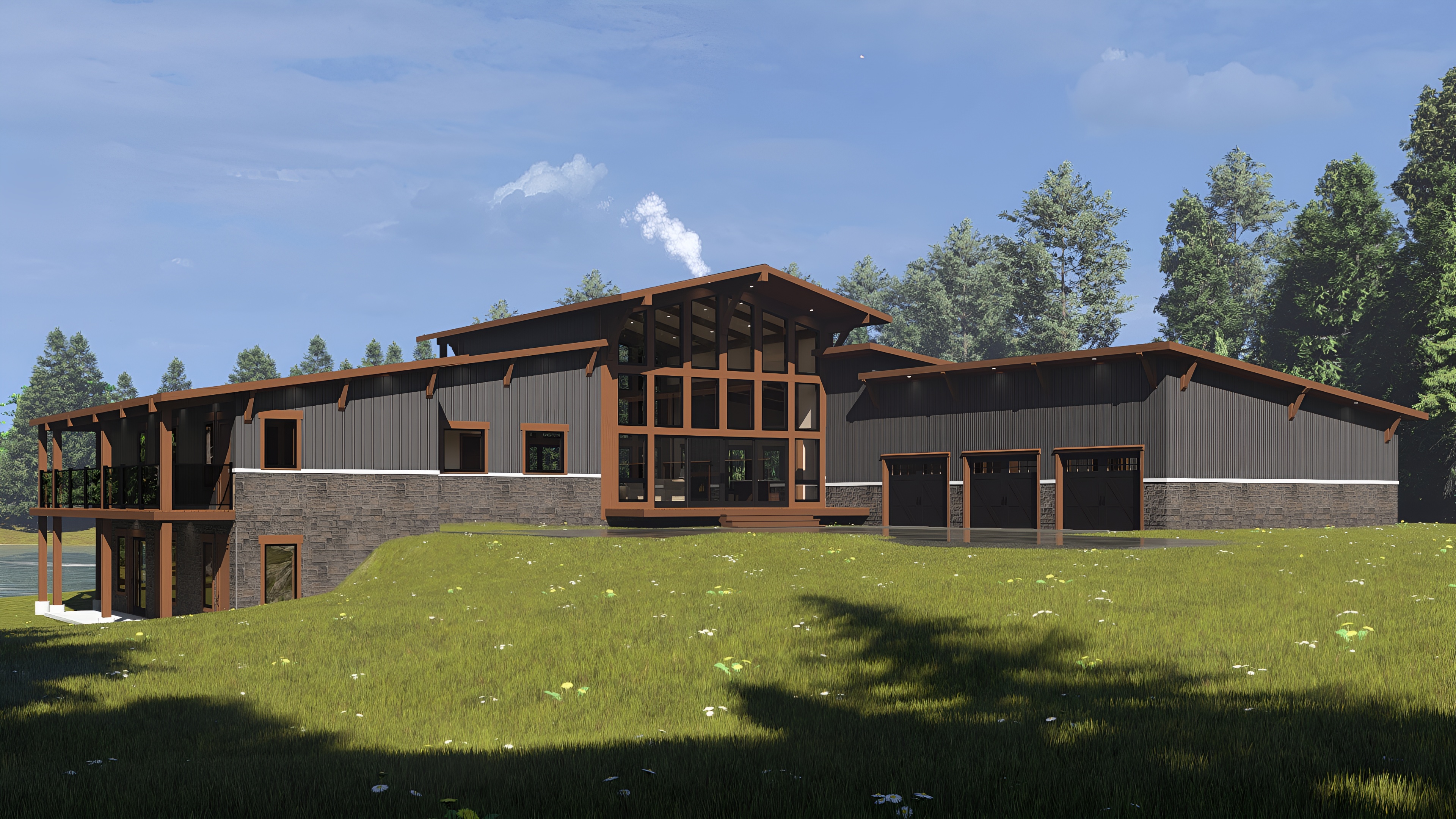 make this exterior render look realistic add a car in front of the garage add a few plants in the foreground and a few trees in the background do not change the color and texture of the building