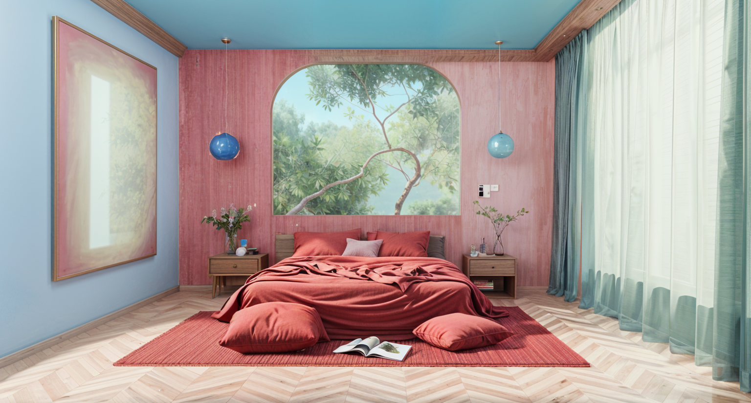 interior shot of kitchen and living room valuted ceilings with recessed light balanced with natural light from windows all wall are soft white with matte finish counter top is white as well with grey matte kitchen appliances flooring is wood like birch its mid day with light coming in from recessed lighten tv mounted on wall to the right