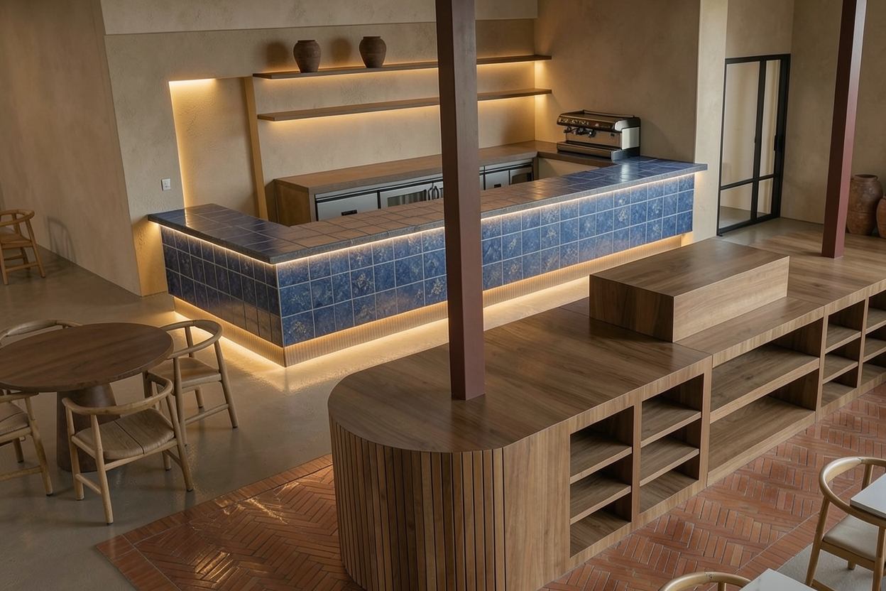 create a high end photorealistic render overall atmosphere contemporary refined and expensive looking with curated details and a premium interior design magazine aesthetic emphasize material authenticity texture depth and realistic light interaction throughout the scene keep the initial design