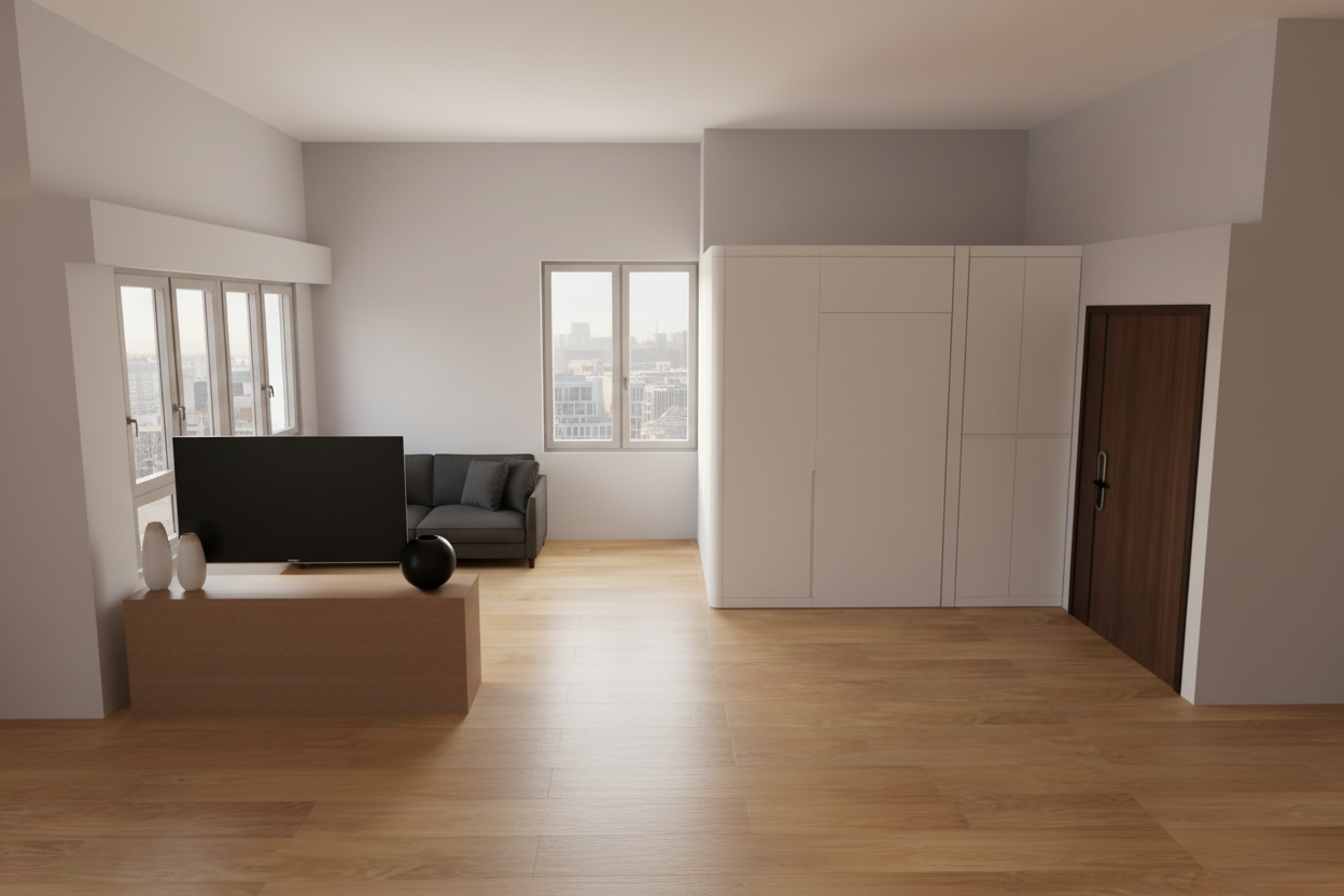 convert this floor plan into a realistic isometric 3d view of a full house show the space from an elevated angle with furniture walls and details visible ultra brutalist office meeting room massive concrete surfaces sculptural ceiling elements in raw deep shadows cold lighting industrial glass enclosure dark minimalist furniture monolithic design high contrast cinematic lighting archisynth render style hyper realistic raw textures powerful atmosphere 8k no people use the same furniture as shows on the plan do not change the orientation of the floorplan