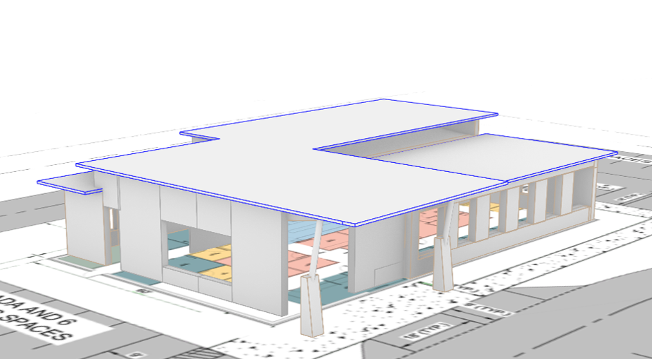 render this image with mountain stone wood brackets make the setting eastern tennessee put glass on openings no mountains in baground make a background highway surround with parking