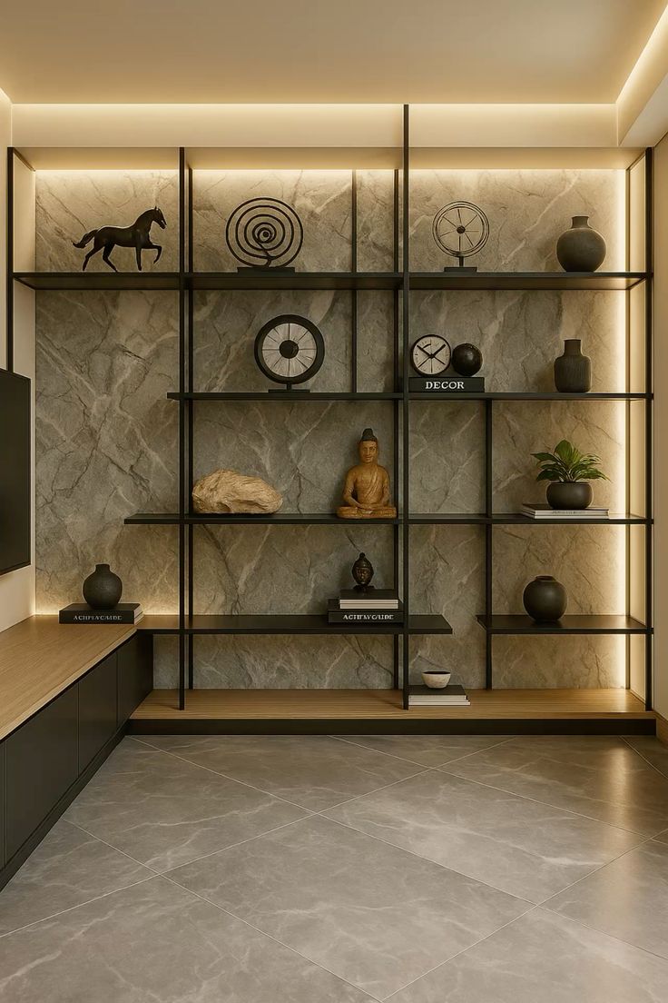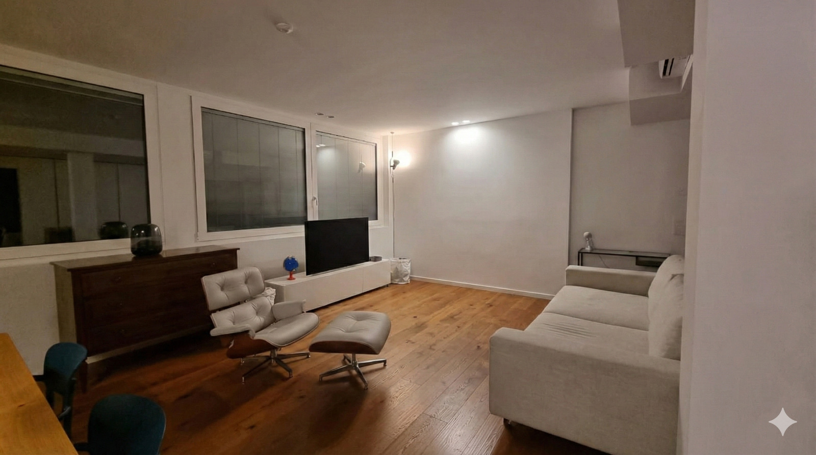 exterior shot aggiungi la libreria presente nell immagine di riferimento nell immagine che ti ho allegato posizionala al centro della parete bianca sul fondo della stanza
