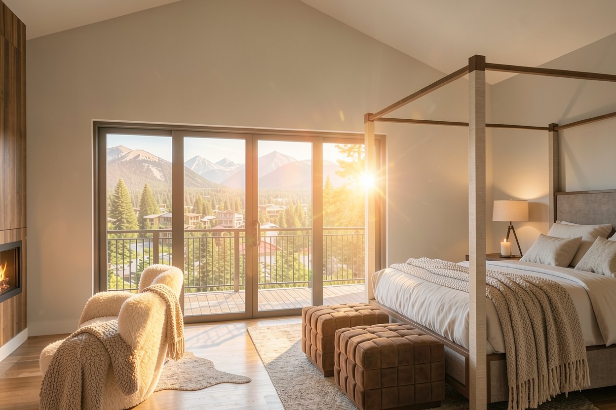 photorealistic editorial exterior render strictly preserving original composition geometry and camera framing add a natural mediterranean background with distant mountains and clear sky ground in beige paving with subtle joints and slight earth between pieces natural and not overly defined areas without paving in white gravel upper volume finished in beige stucco matte with discreet but perceptible texture lower wall in rectangular mediterranean clay pieces warm tones natural variation and clean joints bollards as lighting elements lower part in corten steel upper part in semi opaque white glass enhance vegetation with more realistic textures and natural variation adjust rock color to soft beige integrating spontaneous vegetation growing around them without covering them entrance door in wood visible natural grain not exaggerated with simple stainless steel matte handle and lock improve the vespa correct proportions and slightly increase color saturation while keeping realism balanced natural light soft shadows no plastic look careful material definition
