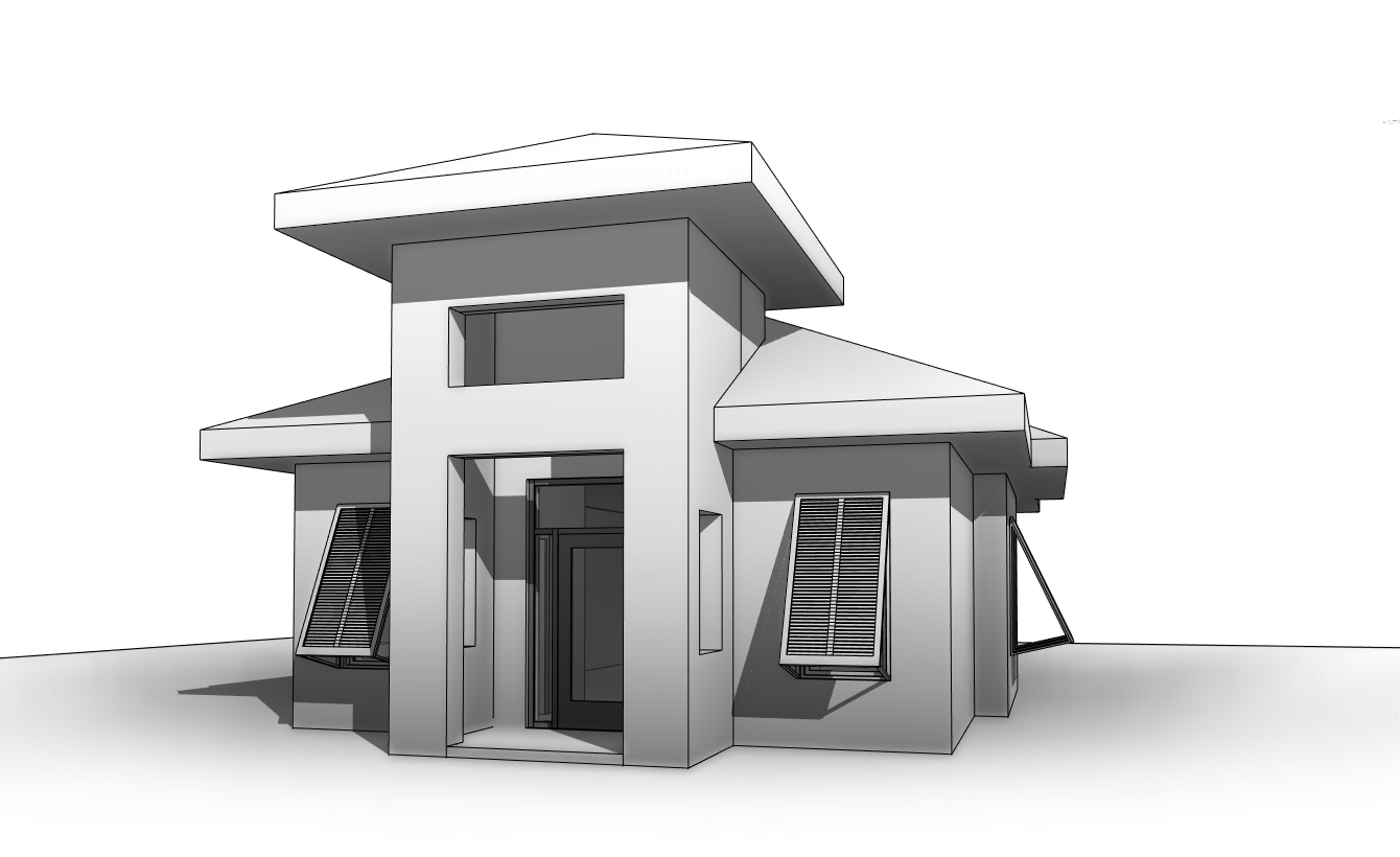 stucco building with gray clay shingles south florida style light green storm shutters for windows with landscaping and palm trees around and a golf course in the background pathway to the entrance with gray pavers wall sconces on entrance