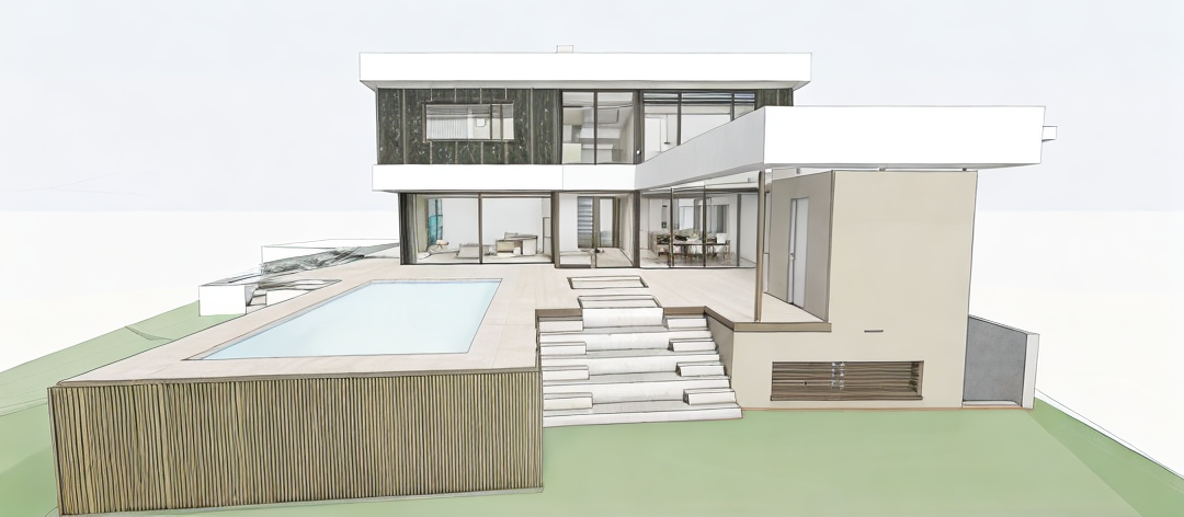 cad drawing of bed on bed wall add draperies to the large windows make drawing 3d architecture