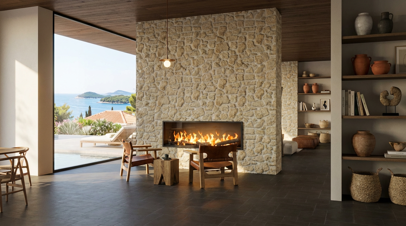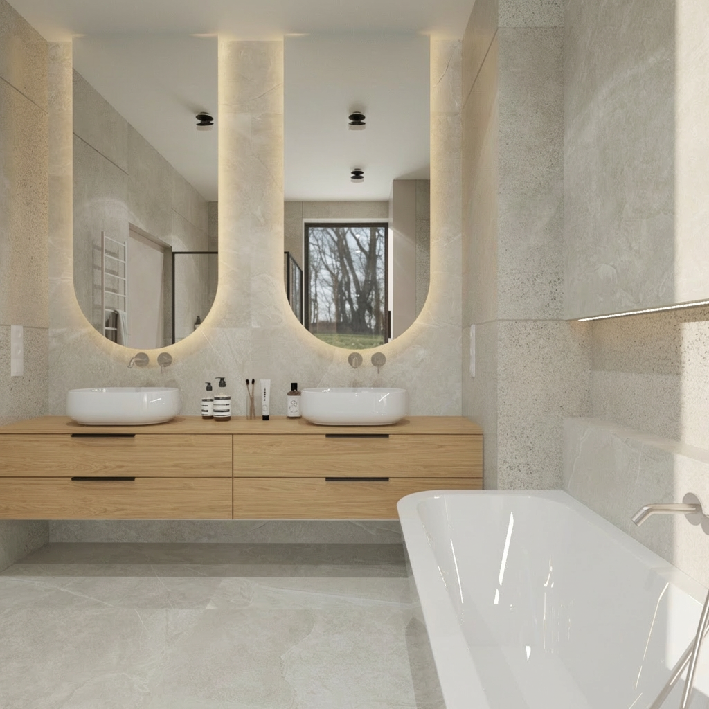 maintain colours and textures add led track below upper cabinets add cement flooring large slabs