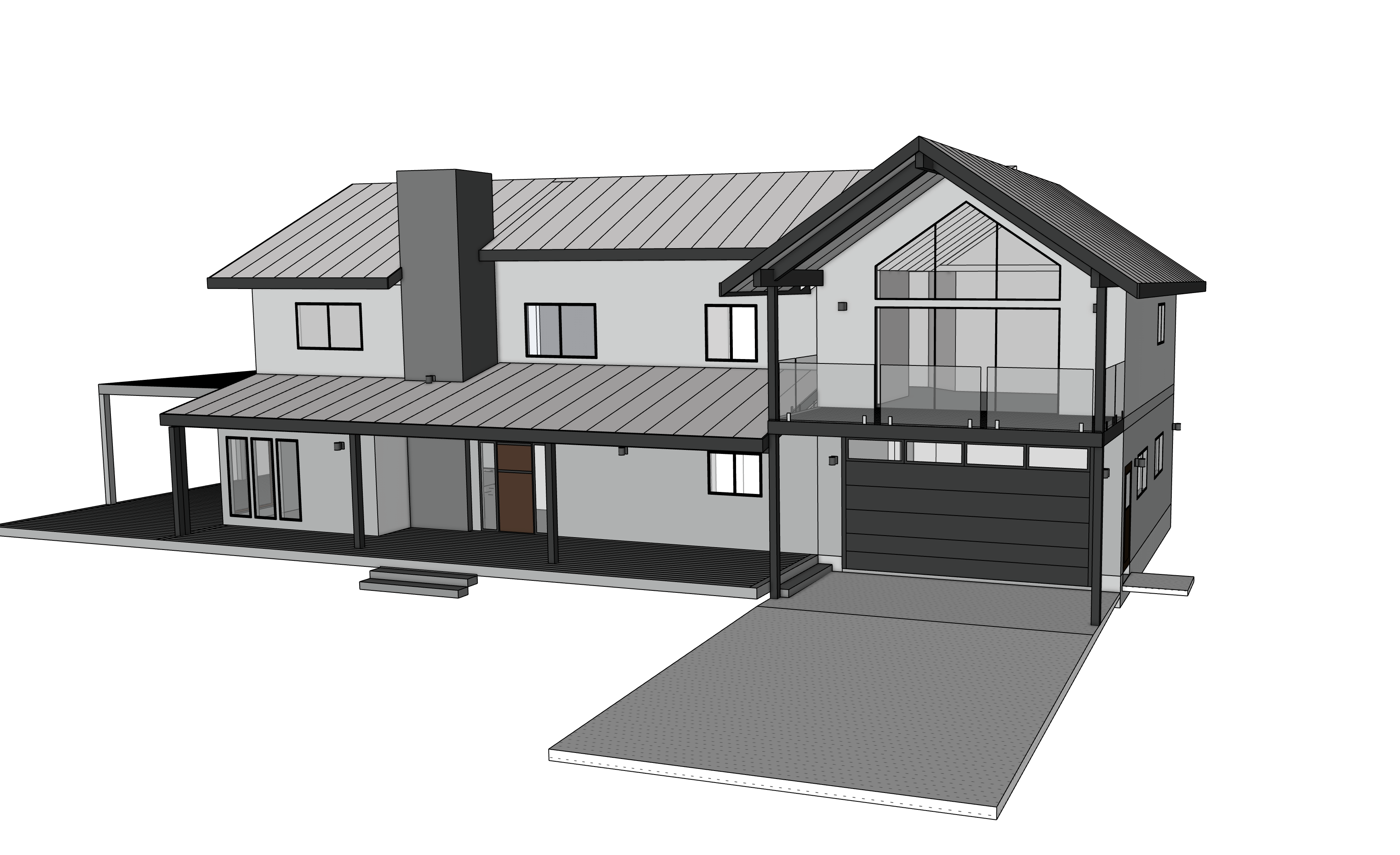 modernist exterior shot dark vertical siding steel roof black windows modern stone chimney adn modern accesnt architecture