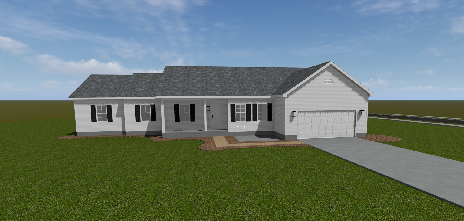 make as photorealistic as possible while keeping textures the same as selection professional landscaping in a lightly wooded scene with good lighting black louvered shutters
