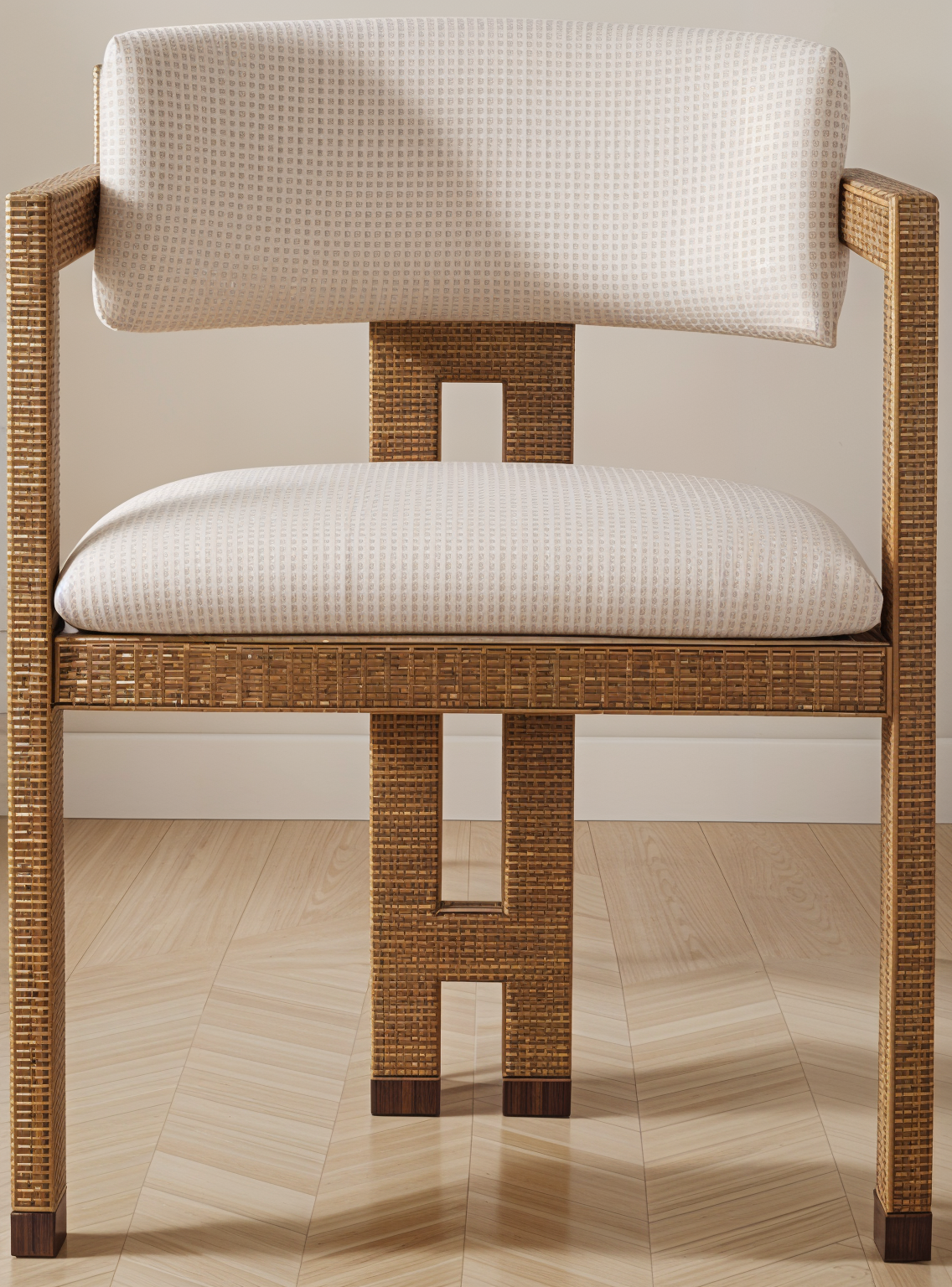 raffia weaving accent upholstered seat and back