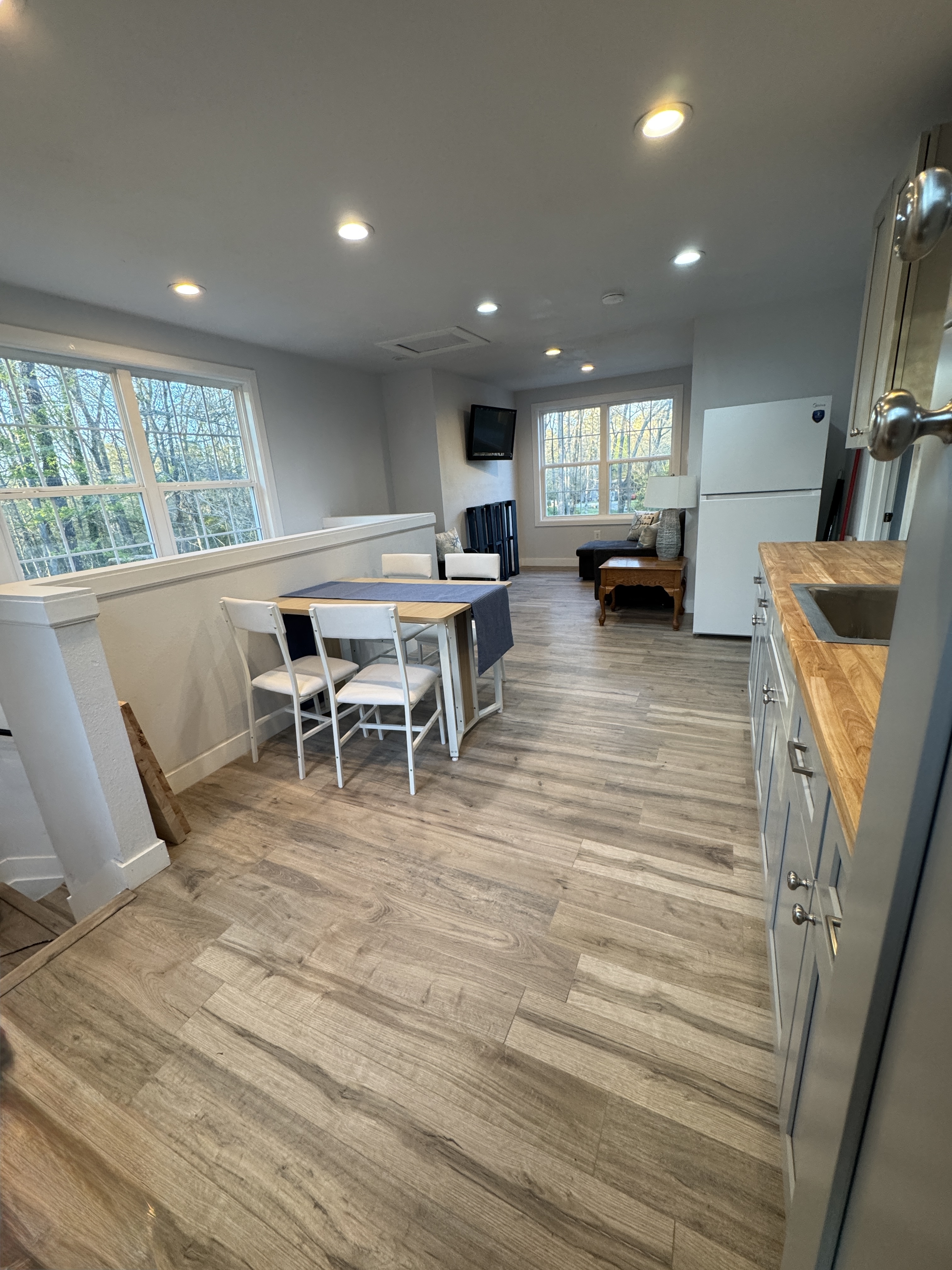 put decor on the tables and greenery by tv only by tv