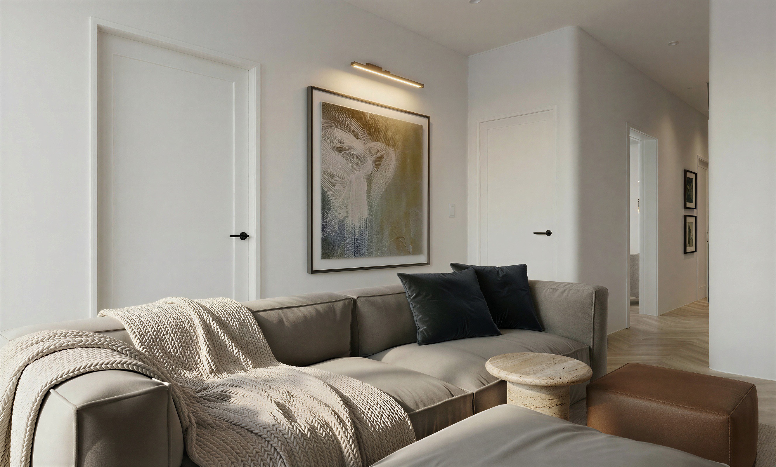 make the sofa fabric a little bit more texturized keep everything else the same