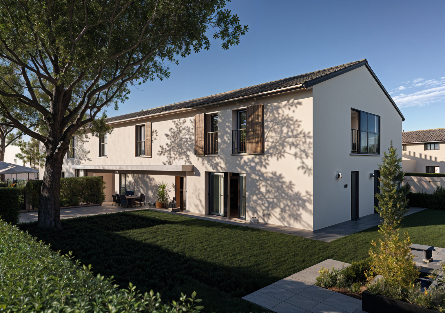 new urbanism rooftop shot use nature material wood stone concrete coziness and greenery set in the evening with soft gentle sunlight make it a community center make roofs curvy architecture