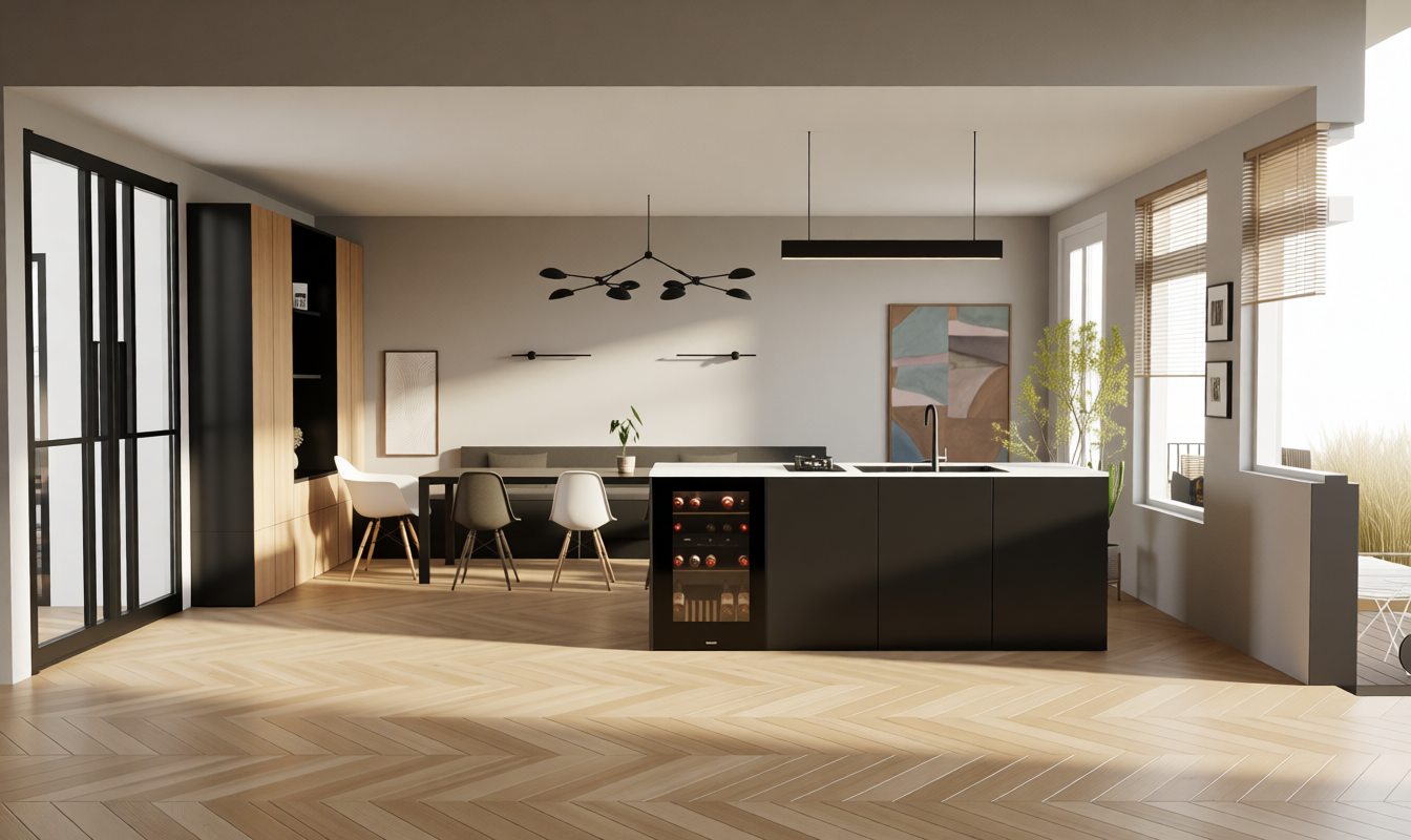 convert this floor plan into a modern isometric 3d view of a full house show the space from an elevated angle with furniture walls and details visible use the attached floor plan image as a strict spatial and geometric reference generate a 3d architectural interior rendering of an ultra luxury walk in closet suite organized around a central open air courtyard scale ceiling height critical the space has a significantly elevated ceiling height reading as double height or more creating a grand airy architectural volume the closets are contained within a large open interior envelope not subdivided into standard height rooms the feeling should be closer to a gallery or pavilion than a conventional interior millwork concept the curved elements represent freestanding architectural millwork volumes not perimeter walls these millwork elements are full height but detached standing as sculptural objects within the larger space maintain the exact curved geometry and placement shown in plan the millwork does not touch the ceiling uniformly it reads as intentional architectural pieces within a taller volume islands the blue elements are freestanding islands at countertop height positioned exactly as drawn islands remain visually light and subordinate to the millwork volumes courtyard the central courtyard remains open to sky lushly planted with palms and greenery large glazed openings create a continuous visual connection between interior and exterior do not alter the plan no added walls no simplified curves no symmetry corrections respect circulation paths proportions and spacing exactly as shown lighting atmosphere abundant natural daylight from the courtyard indirect architectural lighting integrated into millwork soft shadows emphasizing scale height and curvature camera output wide angle interior perspective emphasizing height and spatial depth eye level camera photorealistic architectural visualization with a calm refined gallery like mood style modern art deco luxury closet strong vertical paneling rhythm lacquered surfaces with subtle sheen brass inlays or bronze trims marble or onyx islands with rounded corners symmetry expressed through proportion not layout changes elegant glamorous architectural restraint use the same furniture as shows on the plan do not change the orientation of the floorplan