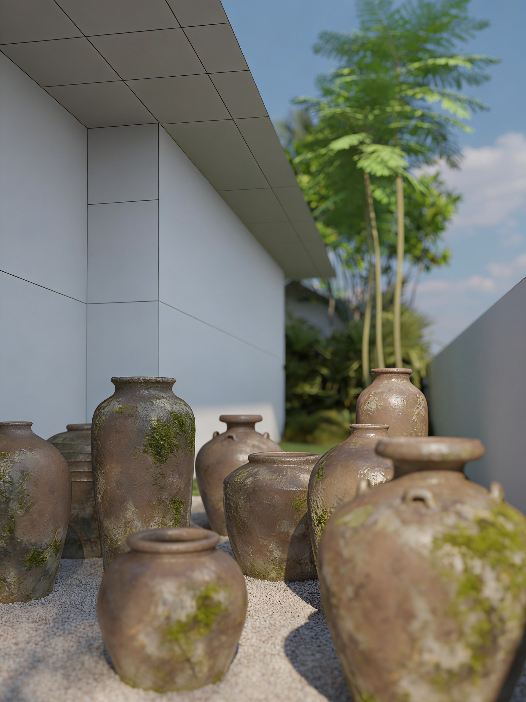 make the picture more photo realistic and make the tree and stone arrangement more minimalist zen garden