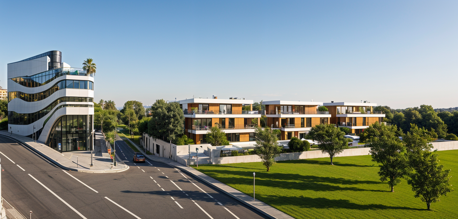 add the road in front use the same textures on the elevation like the last render add a few clouds on the backround make a photo more realistic
