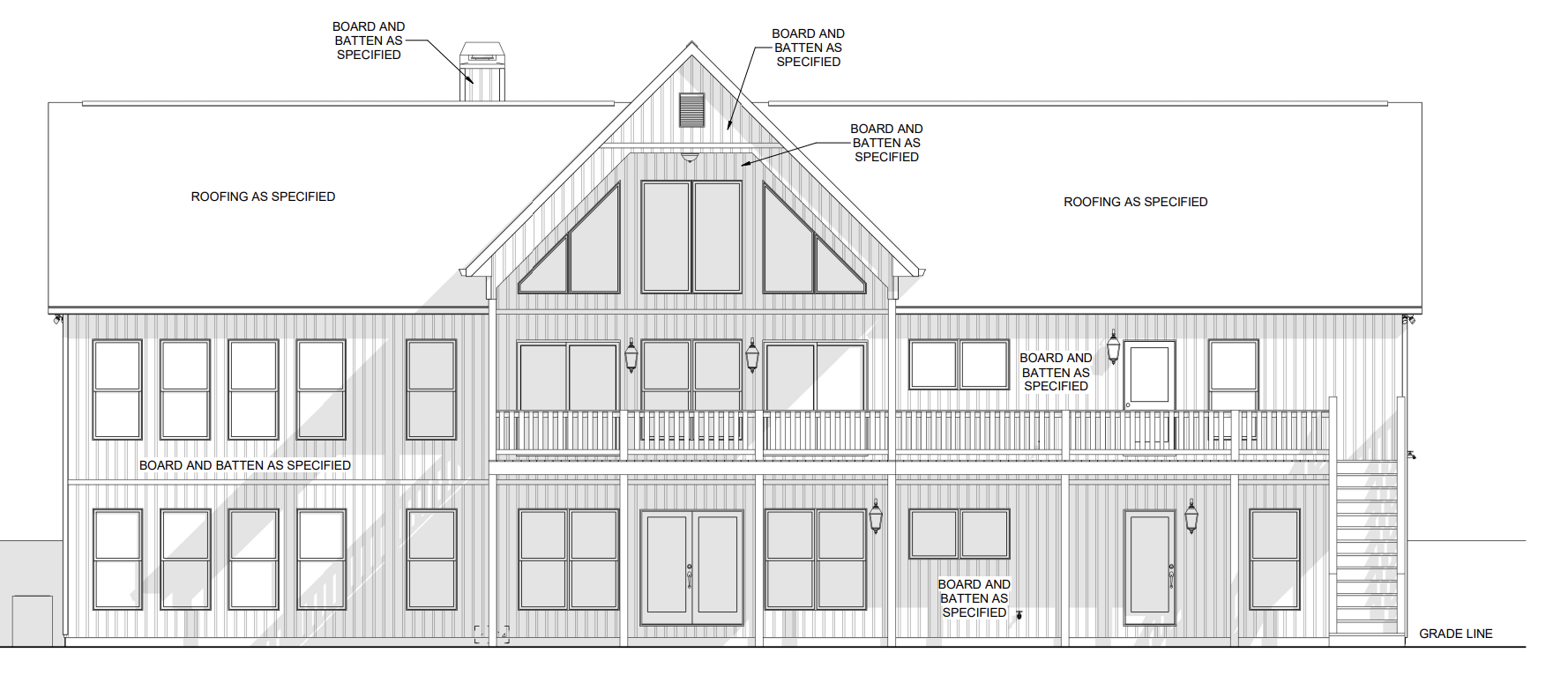 white vinyl board and batten siding with charcoal shingles wooded area on lake