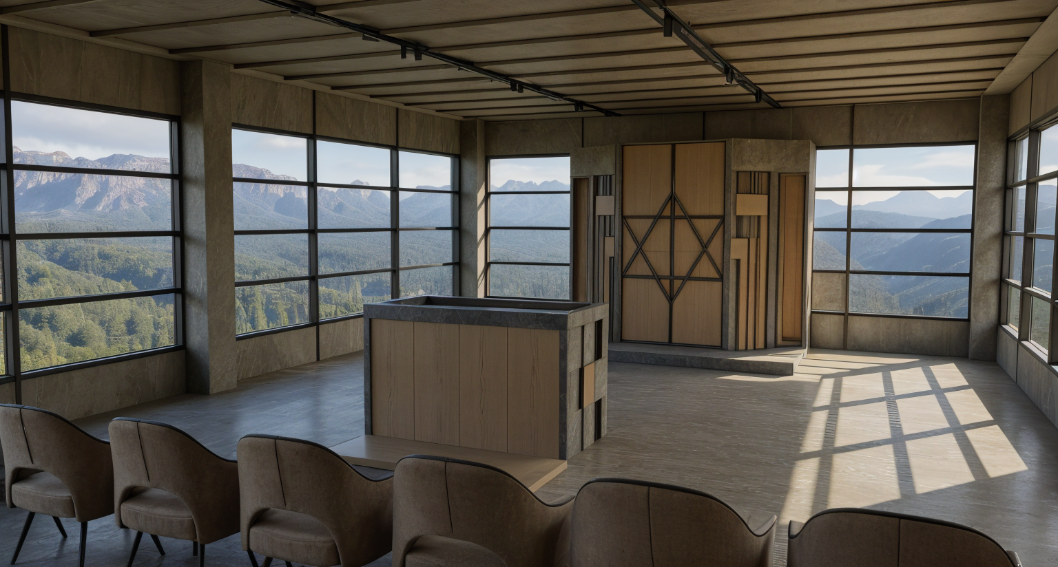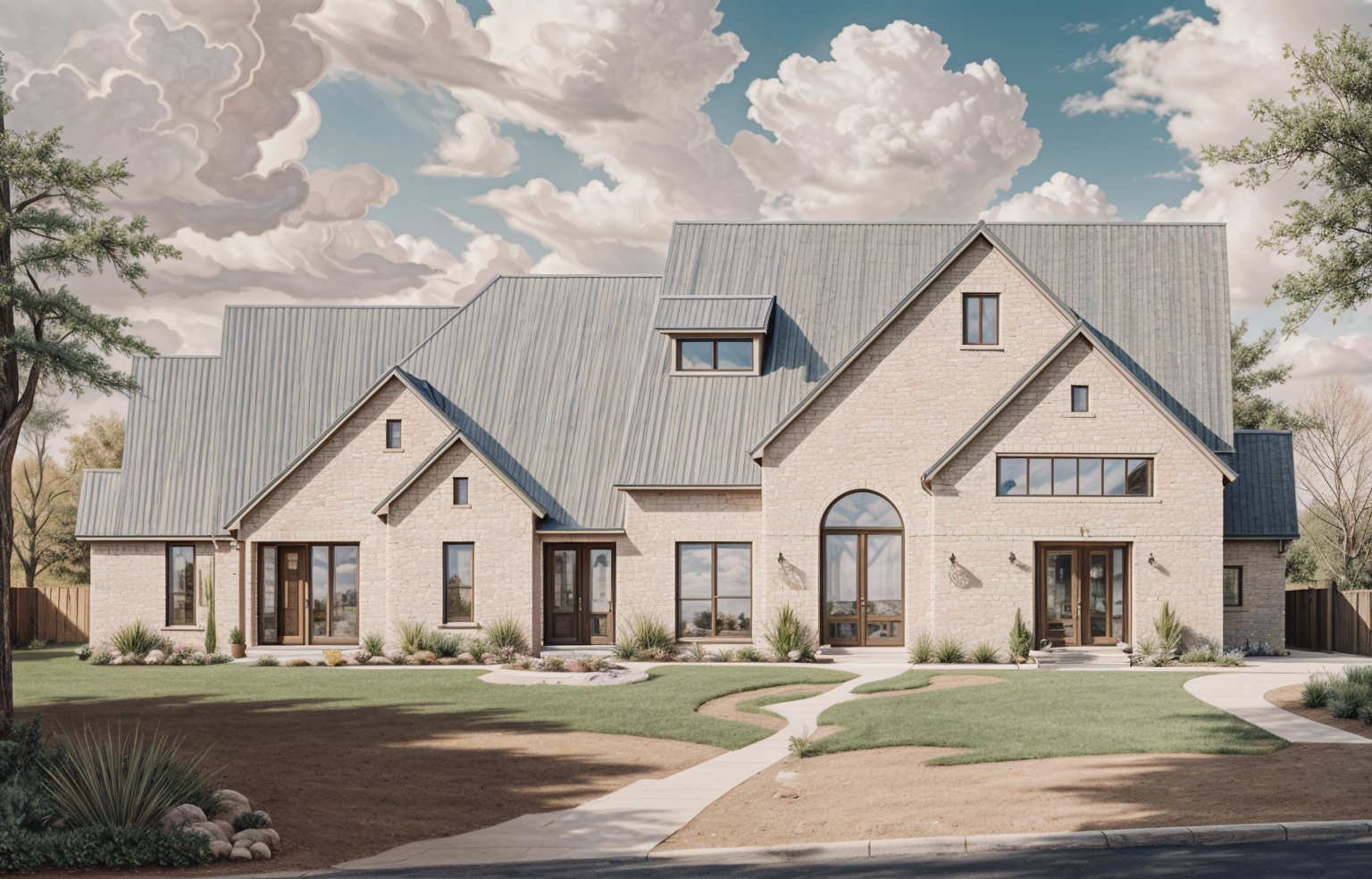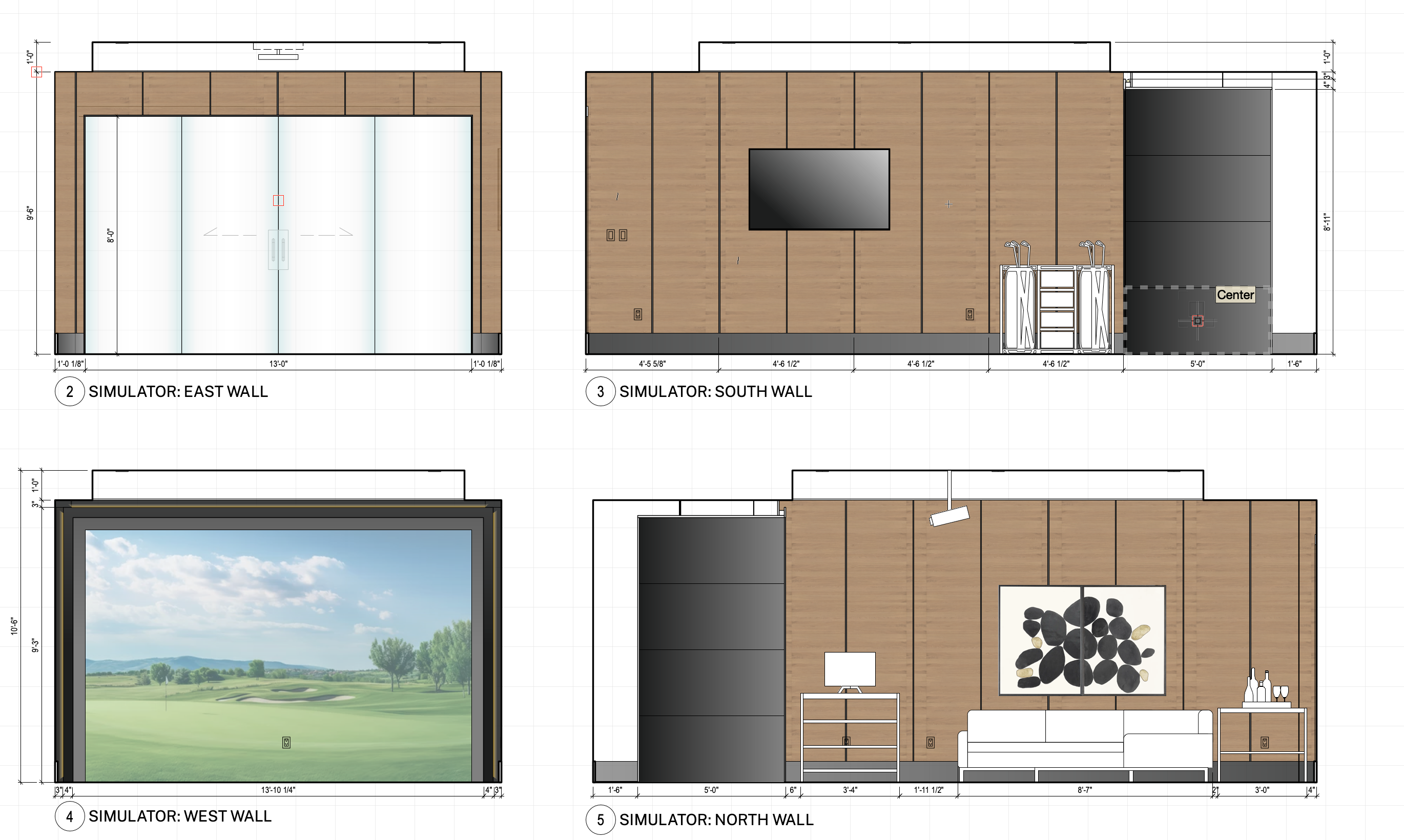 modernist exterior shot create an image of a golf simulator based on these elevations architecture