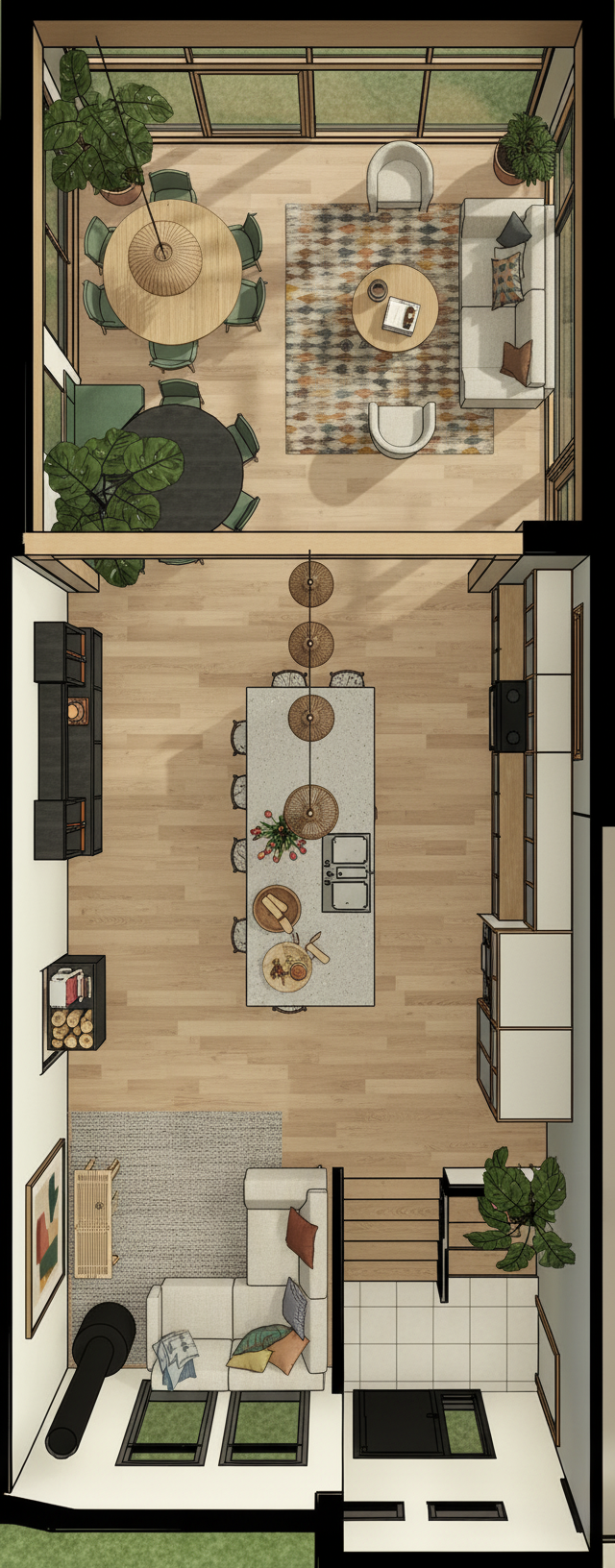 you are a professional image renderer you create the highest grade renderings around and specialize in architectural renderings this is the front elevation of a house create a high resolution photorealistic image of this structure keep the windows as they are where they are keep the doors as they are where they are keep the main structure as it is where it is feel free to change the perspective keep the roofline as it is where is it do not add anything to the structure that i have not asked for the driveway enters in the center of the front elevation and turns to the right garage wing of the house the right wing of the house extends out 35 and is a garage the background will be a property that backs up to a texas lake it should be early afternoon with a bright sunny day clear skies the landscaping should be late summer with color and should be that of a luxury estate