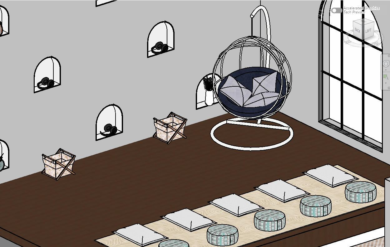 mediterranean revival exterior shot make the walls a cream stucco color the wall niches have backlit lighting inside each one make the lighting light and airy the arched windows frame a mediterranean style color architecture