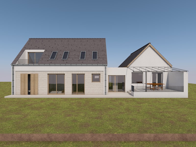 photorealistic enhancement of a residential house exterior preserve all existing materials surfaces colors and textures exactly as they are no redesign or alteration allowed only apply subtle quality improvements increase resolution sharpen textures enhance natural lighting and shadows slight color and contrast correction the facade roof cladding and windows must remain unchanged in form and material the environment garden sky vegetation can be refined to look more natural and detailed but not exaggerated or stylized do not add new elements or modify the architecture realistic daylight lighting balanced exposure