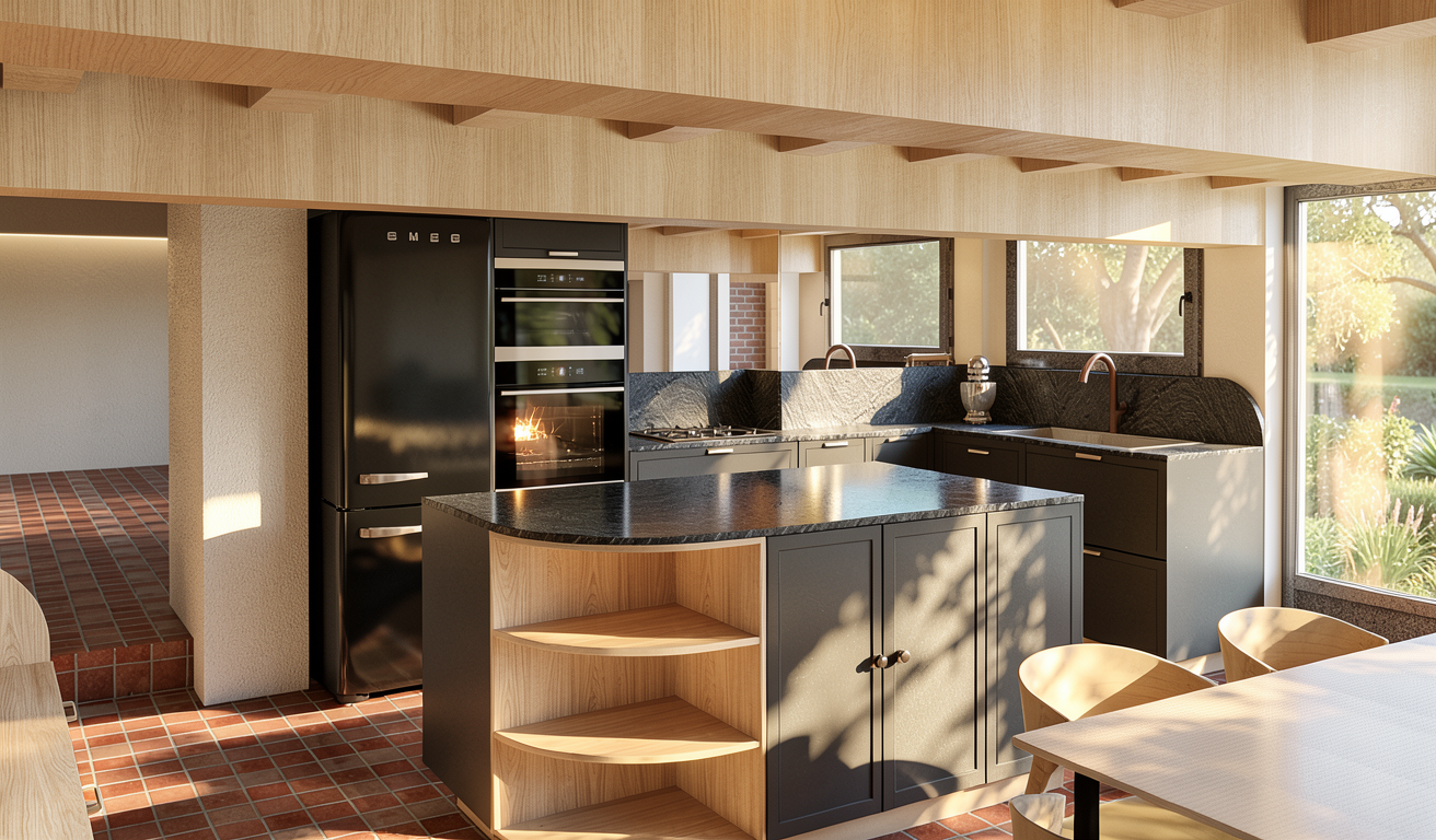 zv t i kruhov stv tidlo v kuchyni na dvojn sobn pr m r uprav dez n podlahy a z st ny nad pracovn deskou kuchyn na dez n dub v m rn m matu