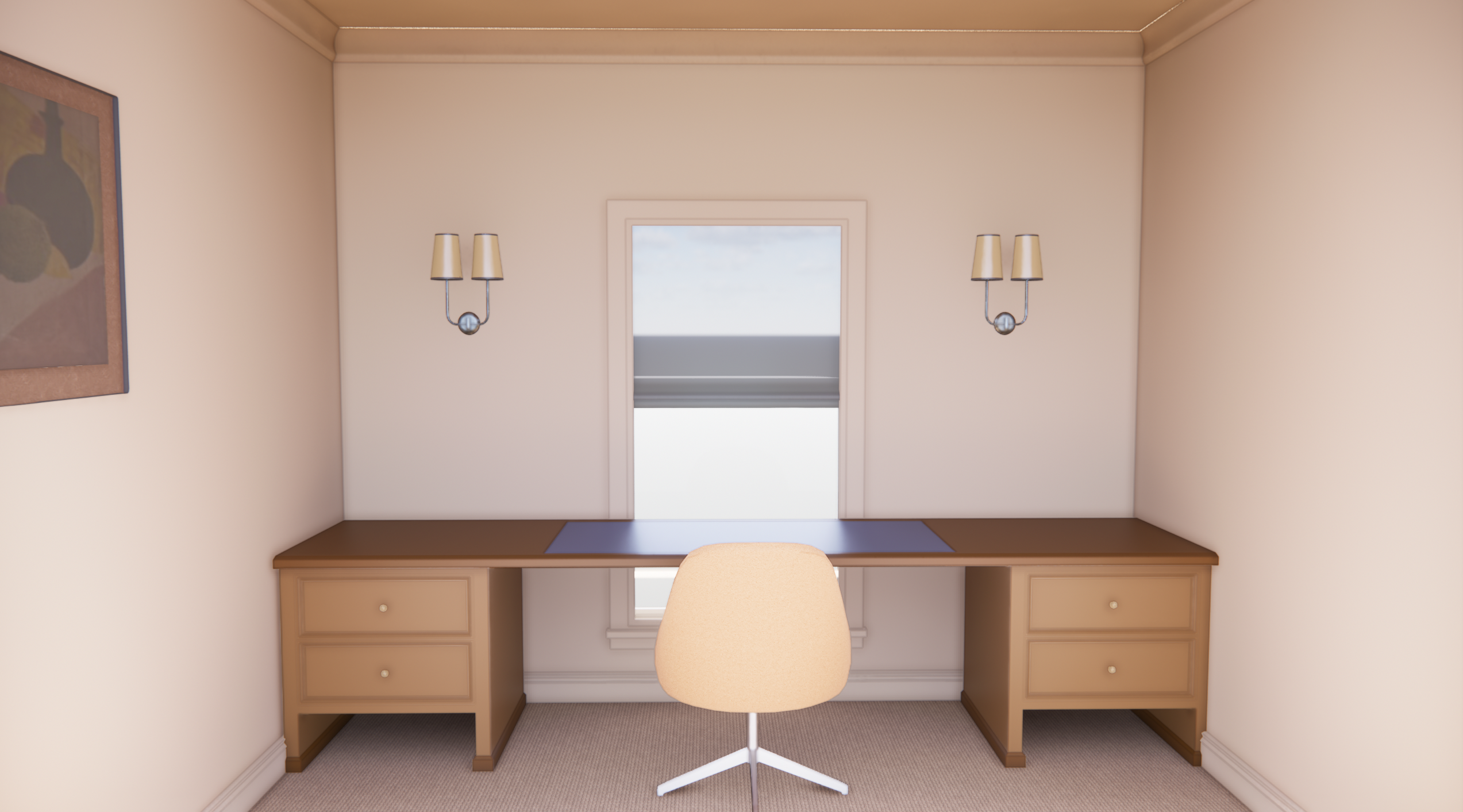 make the blind a roman blind in linen dont change anything else nad maintain colours but turn wall lights on