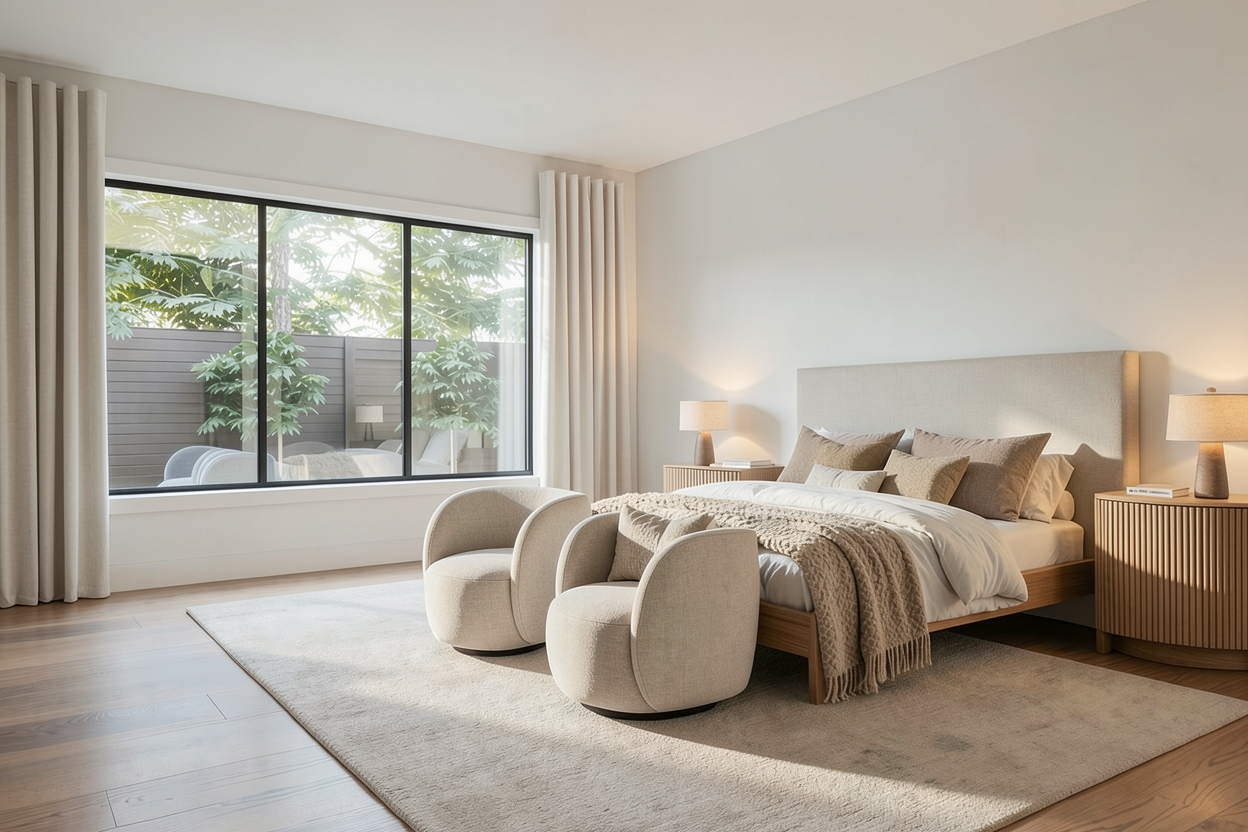 do not change the cabinets in any way preserve the exact cabinet colors materials finishes dimensions door and drawer styles hardware spacing alignment and all geometry exactly as shown do not alter the countertop shape backsplash appliances flooring lighting fixtures or wall structure only remove the construction materials clutter and mess from the scene clean the room and make it look finished and staged add a few simple tasteful home accessories appropriate for the style of the space but do not add or remove any furniture windows or architectural elements maintain the original lighting direction and realism enhance clarity and polish the photo while keeping the cabinetry and room design completely unchanged do not alter the lighting to keep the cabinet colors as they are in the image keep the white background just make it look realistic