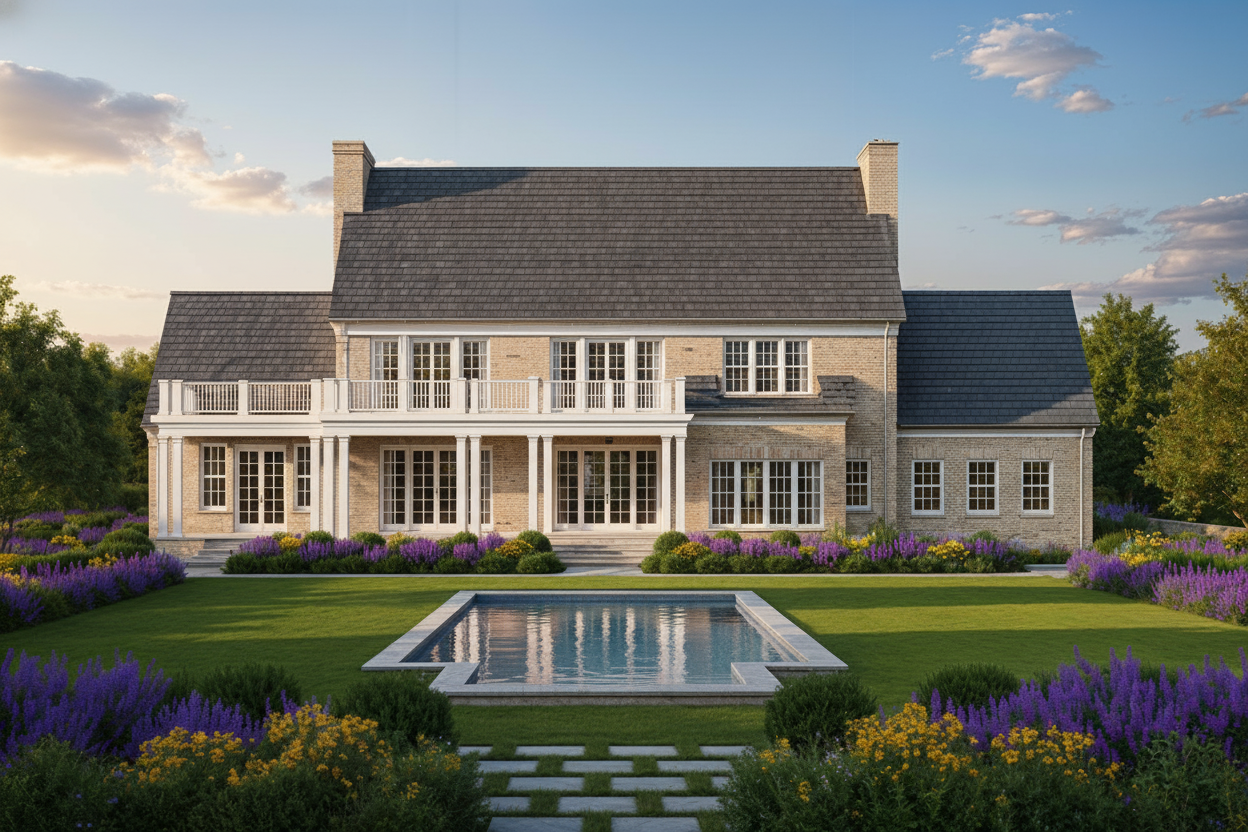 rooftop shot render a modern conference room interior from a top down perspective the room features polished marble flooring in light beige elegant dark wood tables are arranged in a semi circular layout with sleek black chairs positioned around them include a smaller circular dark wood table in a separate area with red chairs for contrast the walls are a soft cream adorned with large bright orange framed windows add lush green potted plants by the windows for a touch of nature create a warm professional atmosphere with ambient lighting and subtle shadows to enhance depth and detail