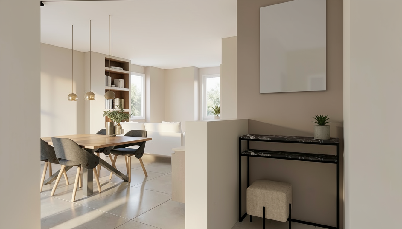 convert this floor plan into a realistic isometric 3d view of a full house show the space from an elevated angle with furniture walls and details visible garage has 2 wide door in front single wide door on left side toward the back cabinet with tv above rear wall of garage right side of door grey epoxy floor kitchen rear wall vaulted with sink with dishwasher to the left on rear wall with door to porch on right side of sink countertop covered porches have concrete floor and no railing around front door is a single craftsman style door master bath has linen cabinet next to sink area and toilet below neo angle shower all flooring in house should be a medium stained tiger wood use the same furniture as shows on the plan do not change the orientation of the floorplan