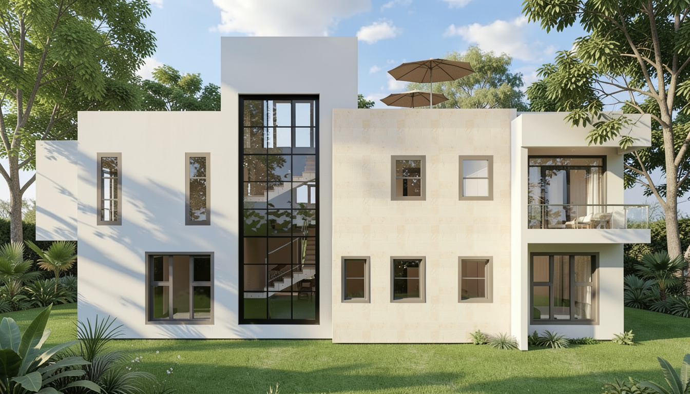 ultra realistic kitchen rendering based on a sketchup model realistic cabinetry materials sw shiitake painted range hood and hutches crystallo quartzite countertops with subtle veining accurate texture scale white oak floors with subtle wear and color variation matte painted walls with slight texture realistic fabric upholstery with visible weave physically accurate reflections and shadows soft indirect light global illumination professional interior photography crisp edges high detail clean modern aesthetic full frame camera 28mm lens