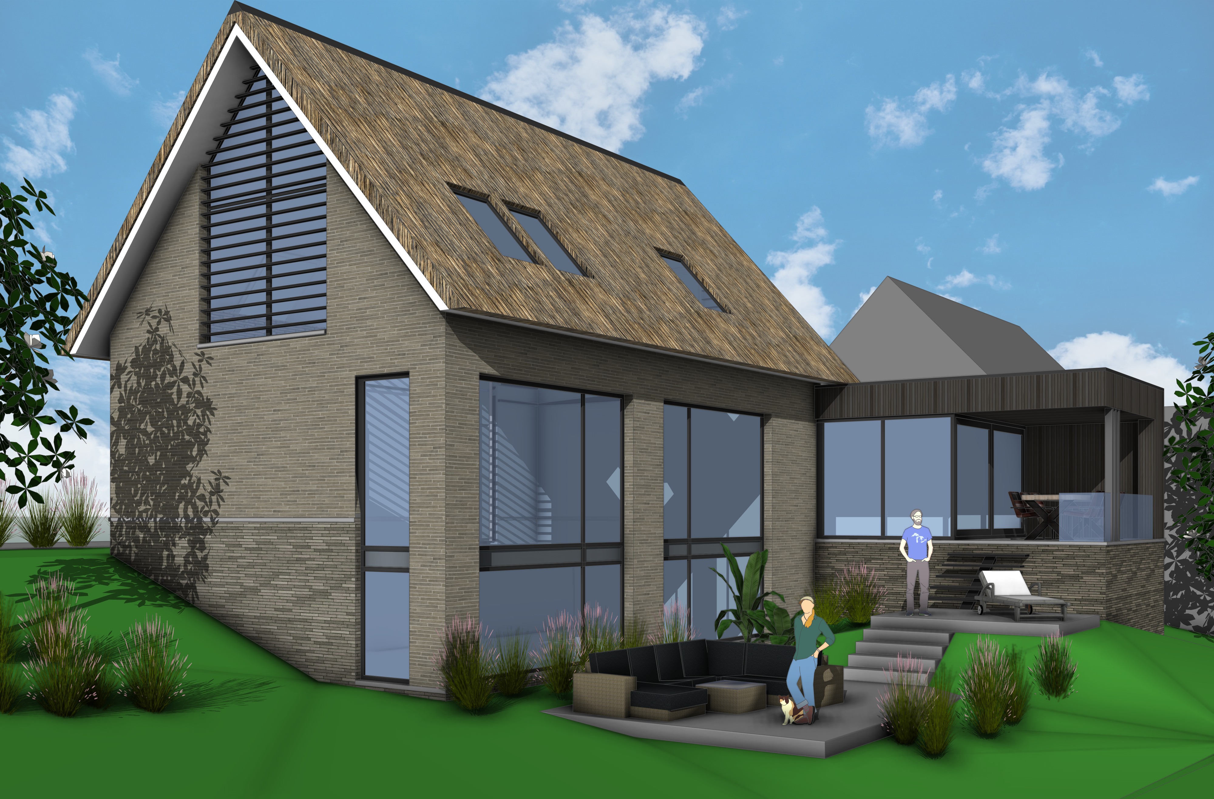keep the brick facde colours the same as in the picture the villa has a reed roof
