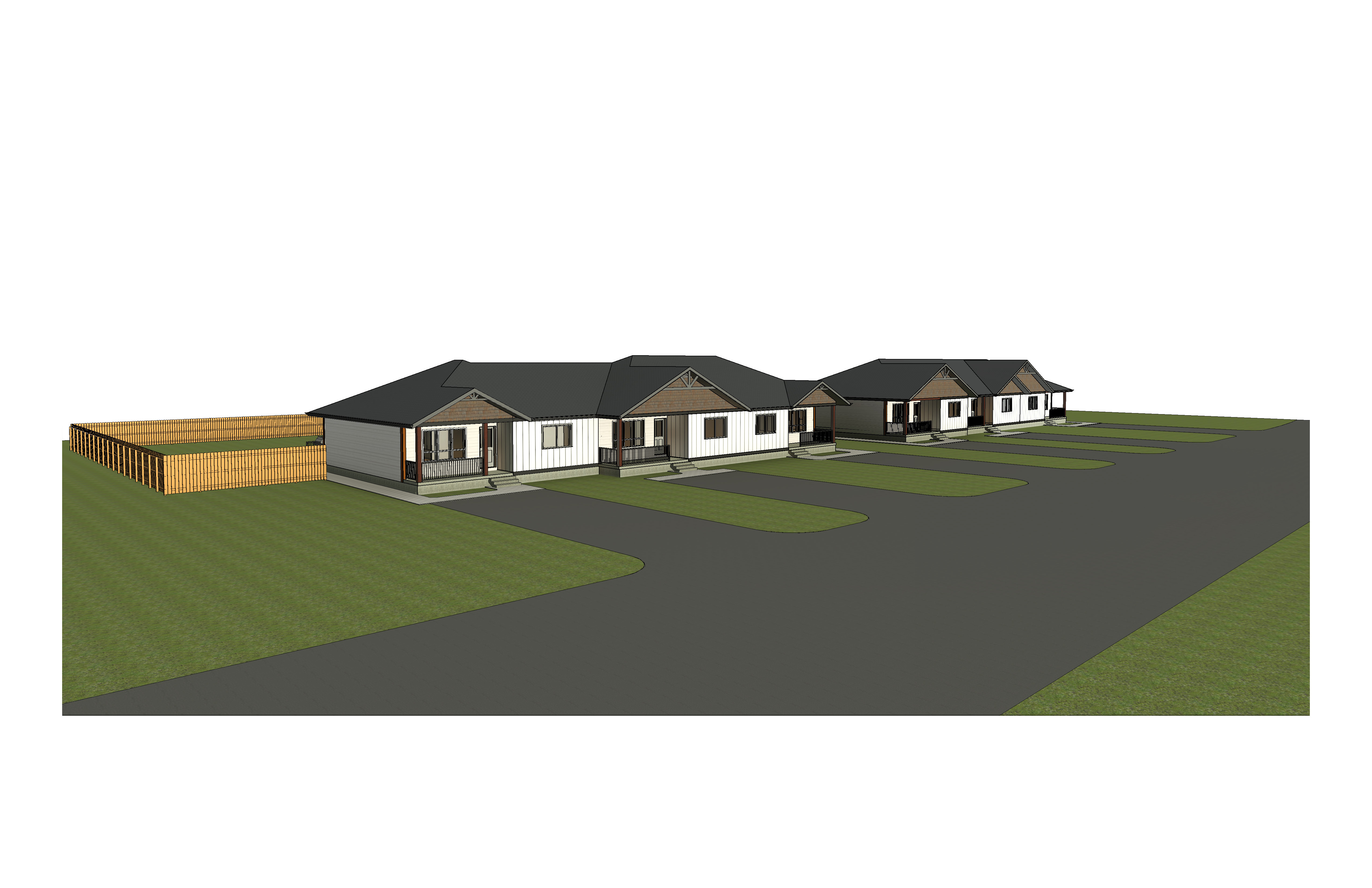 add background trees add small plantings in front of houses siding of the house on the left to be charcoal color