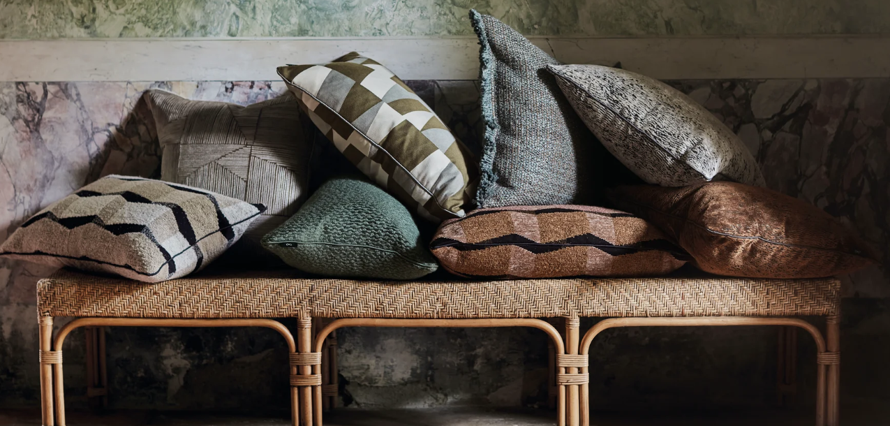 create a custom bedhead for a queen sized bed using the colours in teh cushions