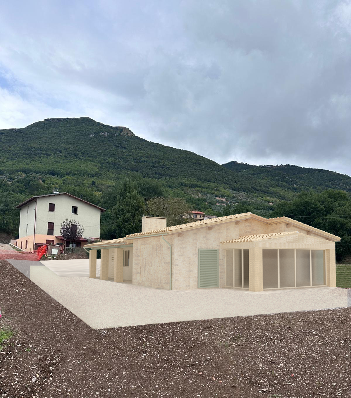 puoi rendere l immagine pi realistica inserendola in un quadro rurale e dandogli un tocco mediterraneo in un giorno d autunno lasciando i coppi in copertura gialli trasformando la terra in primo piano in un prato e la piattaforma dove giace l abitazione in breccia