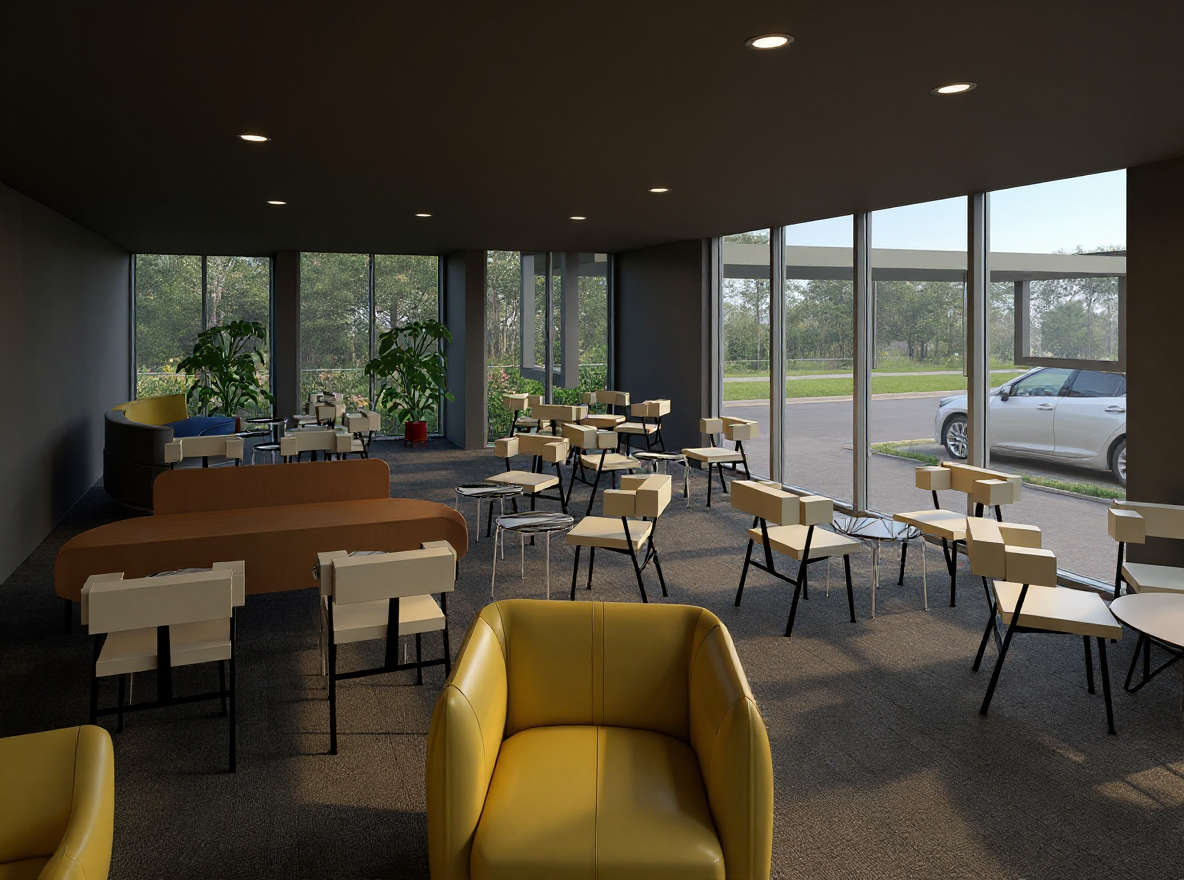 add sunlight and modern render generate from the image that i put change background or image outside this image is taken from ground floor at the window near flower is a road and on the window in the right is a parking put light in the ceiling spots and leds add more light in interier and white ceiling