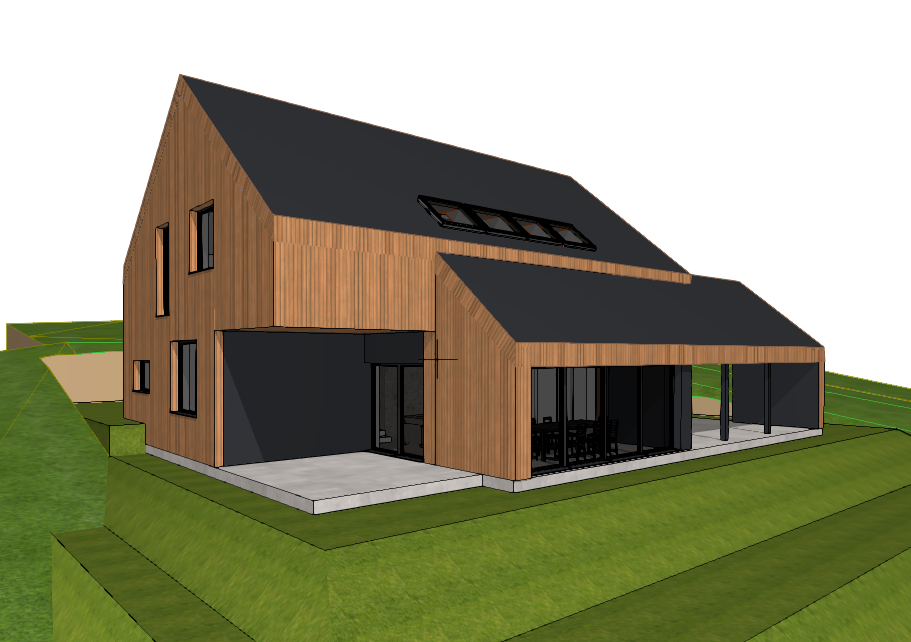 exterior shot nie zmieniaj proporcji ani kszta tu budynku ani kadru elewacja i uk ad bry y oraz kszta t i wielko okien musz pozosta identyczne jak w projekcie przypilnuj tego wygeneruj fotorealistyczne zdj cie architektoniczne o wysokiej rozdzielczo ci i jako ci profesjonalny render dzienny z dodanymi wiate kami i z blaskiem flesza fotograficznego wiat o i ekspozycja unikaj prze wietle naturalna ekspozycja zr wnowa one wiat o i kontrast zastosuj realistyczne o wietlenie dzienne ostro i szczeg y wysoka ostro widoczne detale li ci faktury trawy i powierzchni zero rozmycia fotorealizm ultra fotorealistyczny styl realistyczne kolory ro linno ci i materia w prawdziwe cienie i odbicia kamera profesjonalna fotografia architektoniczna obiektyw 35 mm balans bieli naturalny ekspozycja dopasowana urz d teren wok zabudowy zieleni nisk i wysok dodaj odbicia w oknach ew wiate ka detale trawa dywanowa du o zieleni w tle drzewa realistyczni ludzie na dalszym planie i samochody ewentualne ciep e o wietlenie led dom znajduje si w g rach wkomponuj go w stok dodaj skarpki ziele murki t o dachy pokryte blach antracytow na r bek stoj cy