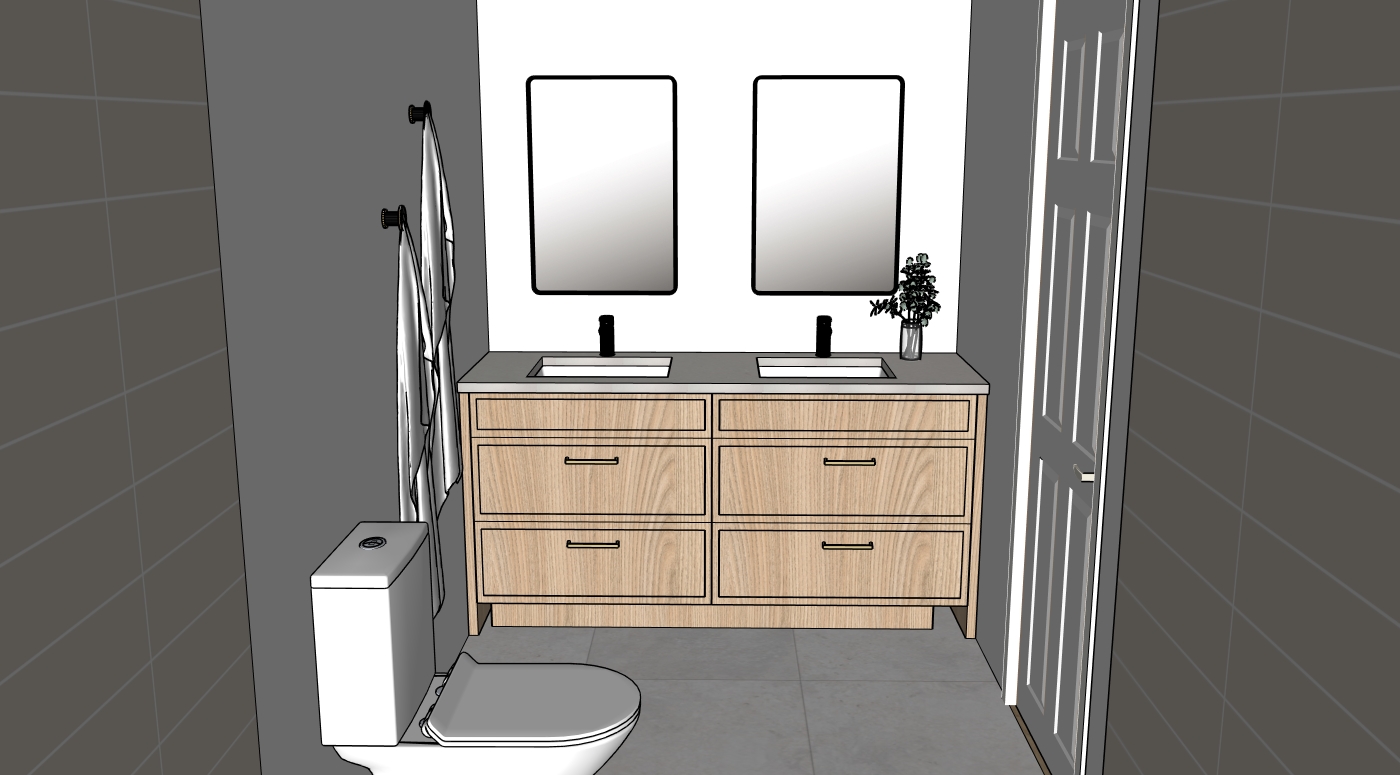 conserver la geometry conserver les couleurs enlever la ceramique au murs coup de pied a fermer en bas de la vanit