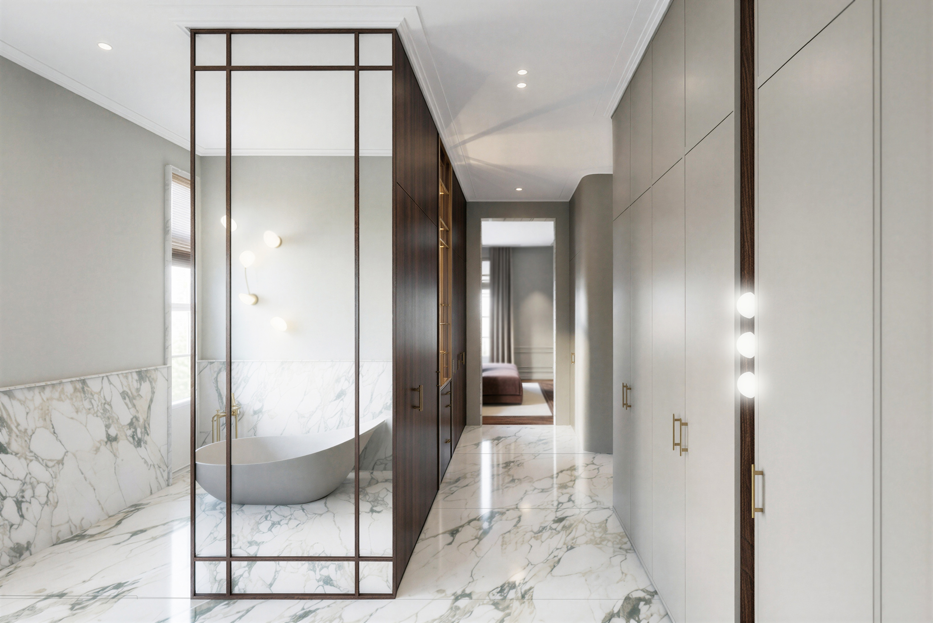 transform this photorealistic image from a daytime scene into a cinematic high end evening atmosphere mandatory preservation strict keep the image exactly the same in composition layout proportions and camera angle do not change any materials objects textures or design elements do not add remove or move anything color material lock preserve all original colors and materials exactly no color shifts in surfaces or objects maintain the original palette only perceived warmth through lighting lighting transformation only cinematic convert daylight into a warm luxurious evening setting approx 2700k introduce soft layered interior lighting like in a high end hotel or luxury residence create subtle pools of warm light and gentle falloff slightly deepen shadows for contrast without losing detail mood luxury cinematic warm intimate and sophisticated atmosphere balanced contrast between warm interior light and darker cooler exterior calm elegant premium feeling like a boutique hotel or luxury villa at dusk window exterior exterior should appear darker blue hour early night slight cool tone outside to contrast with warm interior lighting no new elements only lighting adjustment realism physically accurate lighting with natural shadow transitions subtle reflections enhanced by warm light no exaggeration no overexposure no artificial glow rendering style cinematic architectural photography soft depth refined contrast premium finish slight vignette feeling through lighting not post effect negative constraints strict no redesign no material changes no color changes in objects no added objects no stylization or artistic reinterpretation lighting change only only transform the lighting into a cinematic warm evening atmosphere everything else must remain identical