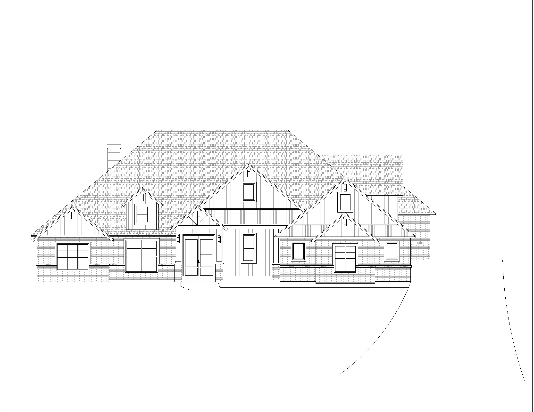 charming house with vertical board and batten siding red brick dark metal roof accent above porch dark shingle roof dark cedar post and accents dark cedar double front door with windows