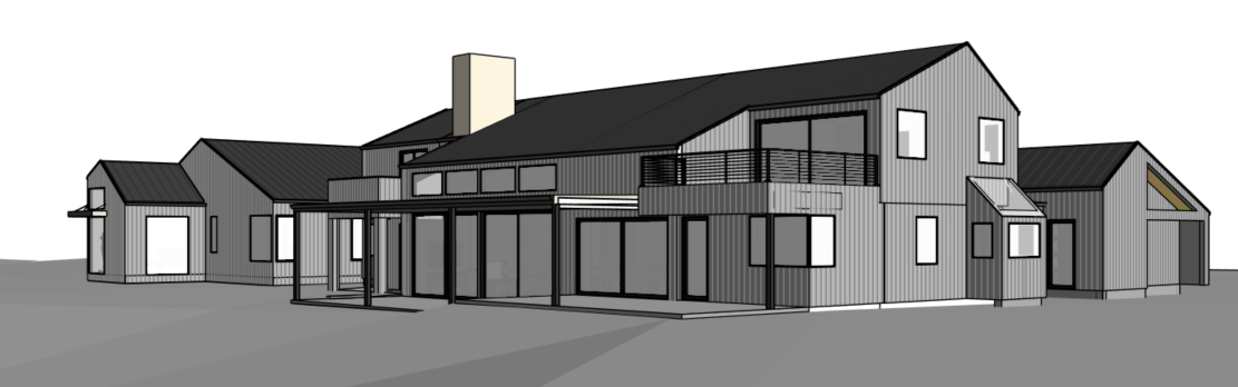 home in the colorado foothills with vertical grey wood siding dark metal roof interior lights