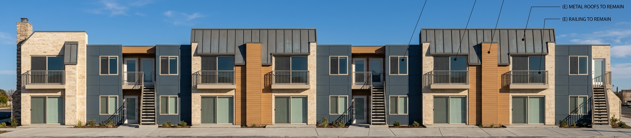 show at night with lighting on building recessed can lights in the soffit
