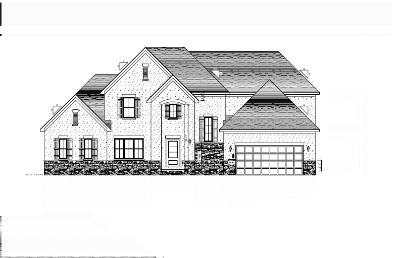 make as photorealistic as possible while keeping textures the same as selection professional landscaping in a lightly wooded scene with good lighting off white stucco brown stone dark roof match the window grids to match the plans