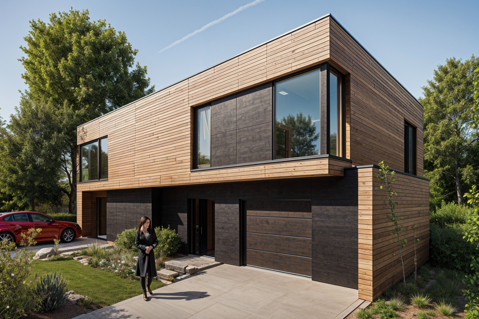 clouds in the sky lots of greenery and trees preserve all existing text on signs and surfaces architecture