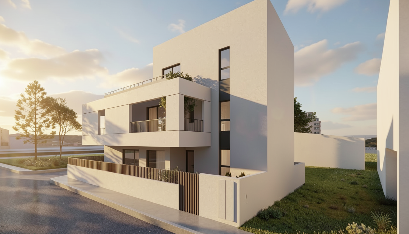 using the provided architectural elevations as reference generate one realistic 3d exterior perspective rendering of the residence the image must be a single 3d perspective view not multiple views not elevations not plans strictly preserve the original geometry volumes proportions roof slopes and window door placements the building volumetry must remain exactly the same do not modify the structure in any way apply horizontal clapboard siding clin only on the side elevations left and right facades for the front fa ade propose a modern and original architectural design the design should stand out and include a refined mix of materials other than standard clapboard siding include in the proposal black board batten siding as one of the main design options wood natural or engineered fiber cement panels metal accents black or dark tones subtle stone elements if relevant the front fa ade must feel high end modern and visually distinctive important details the front porch gallery must be made of treated wood the columns supporting the small roof above the entrance must also be in treated wood solid and architectural look the foundation must remain a standard concrete color light grey do not change or cover the foundation with other materials lighting ambiance daytime lighting with soft natural shadows neutral to slightly warm tone environment add realistic landscaping grass trees natural terrain include a simple driveway and minimal surroundings rendering style ultra realistic architectural visualization high detail textures and sharp image quality do not modify the building structure only enhance materials textures and environment make the front fa ade visually striking and architecturally bold while remaining realistic and buildable