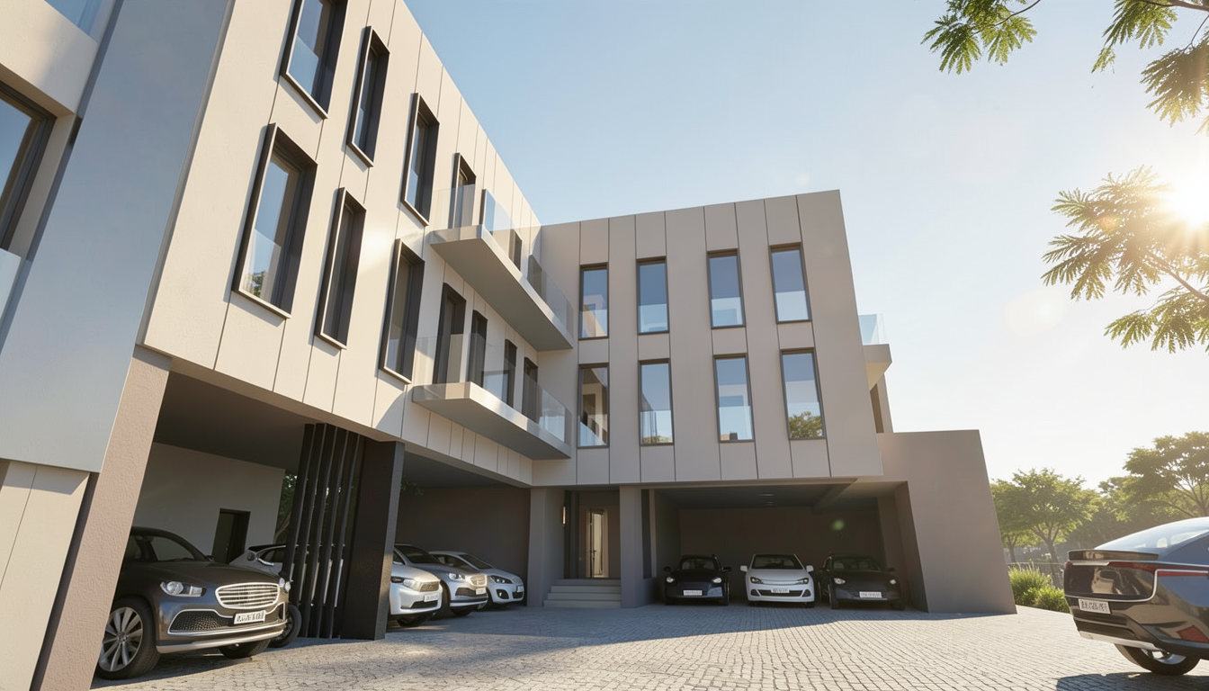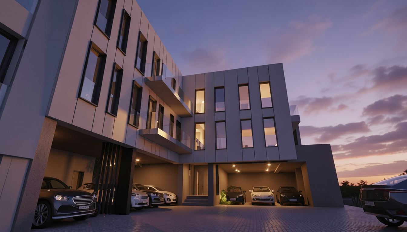 le sol est du gres cerame gris imitation pierre mat les murs sont trait s avec de la peinture la chaux soit beige soit gris soutenu comme sur l image les lulianires sont allum s mais ne pas en rajouter la porte grise de l ascenceur gauche est en inox bross