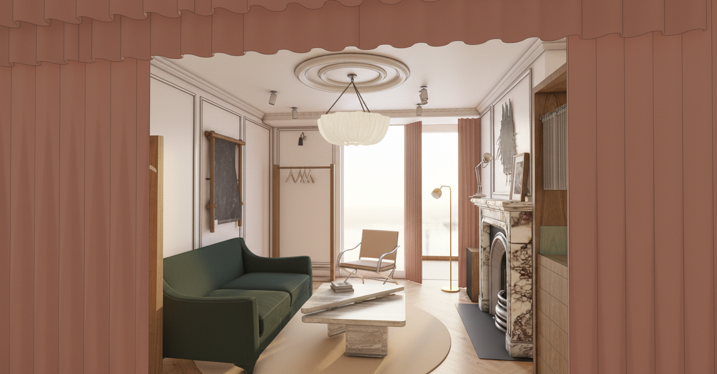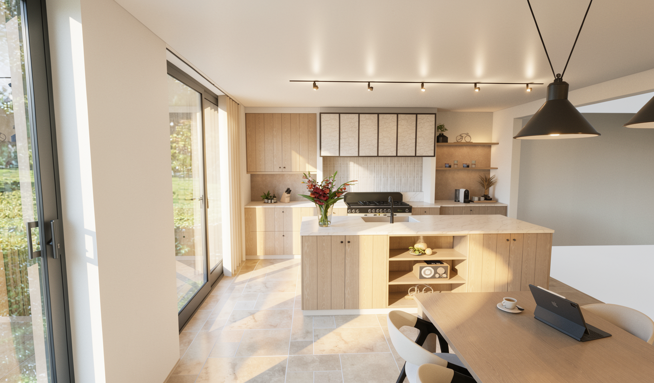 nordic interior shot create a photorealistic view of this retail space do not change any of the details the lighting should feel soft and bright architecture